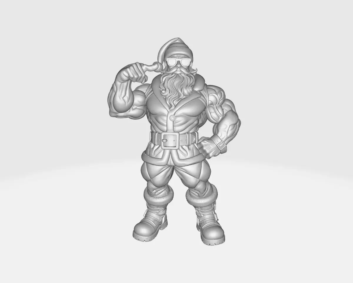 muscle santa, buff santa, christmas 3d print, santa figurine, santa model, holiday decoration, christmas decor, festive figurine, 3d print model, christmas collectible, santa claus toy, holiday gift idea, christmas ornament, 3d printed decor, unique santa, muscular santa, fun christmas gift, santa sculpture, christmas display, holiday figurine