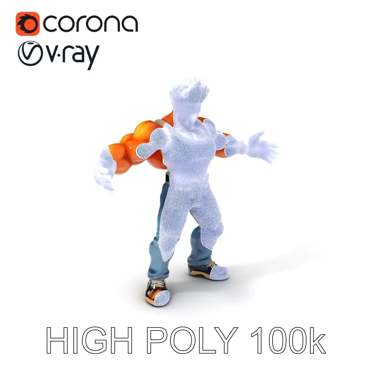 Home Catalog Muscular Fighter Character with Spiky Hair and Tank Top Low-poly 3D model