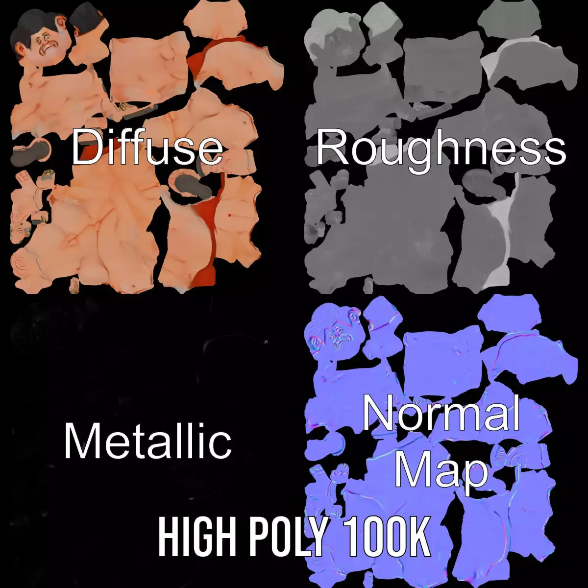 This Muscular Hero Character model pack features a highly detailed, stylized hero figure, perfect for games, animations, and VR applications. Each model has 3 levels of detail: low-poly (1000 triangles for mobile), middle-poly (10,000 triangles for environment), and high-poly (100,000 triangles), which allows for the use of this model in production rendering (such as 3ds Max, Maya, Cinema 4D, Blender, Vray/Corona/Cycles and all others), game engines (Unity and Unreal compatible), and interactive presentations, providing a choice of detail based on the LOD System principle. Ideal for action scenes, hero-based narratives, or as a centerpiece character model. The model's textures are PBR, Diffuse, NormalMap, and reflection/roughness/metallic, which are suitable for any modern rendering engine. All models are accurately unwrapped with no overlapping UVs. All textures are 4096*4096 in size. If you like this model, please leave a comment and a like.