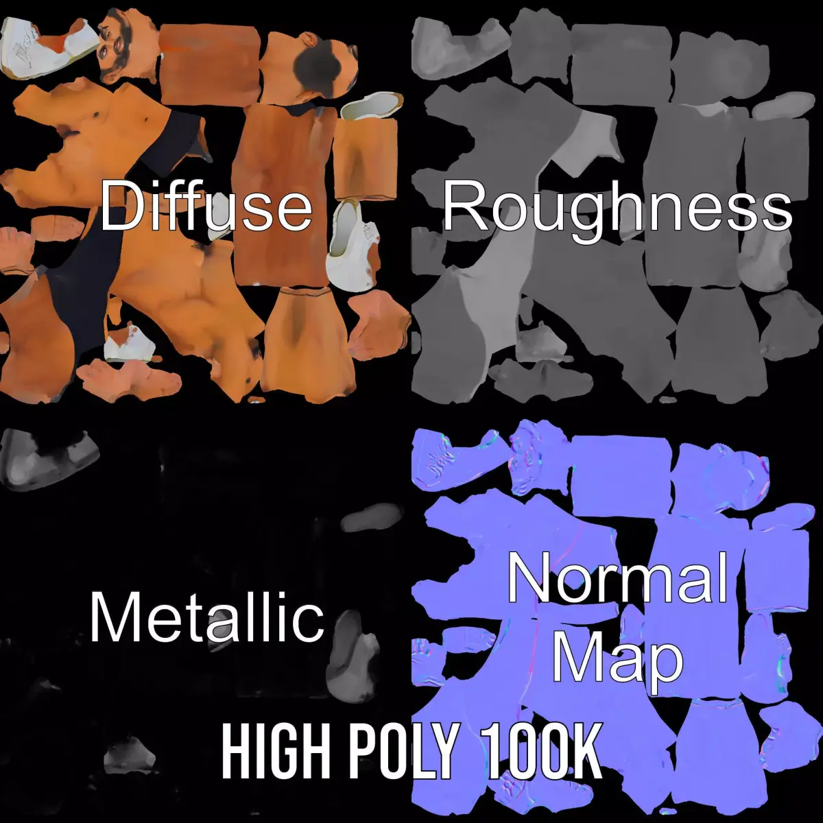 A detailed 3D model pack of a muscular male figure in an athletic pose, perfect for fitness, athletic, or fashion visualizations. Each model has 3 levels of detail: low-poly (1000 triangles for mobile), middle-poly (10,000 triangles for environment), and high-poly (100,000 triangles), which allows for the use of this model in production rendering (such as 3ds Max, Maya, Cinema4D, Blender, Vray/Corona/Cycles and all other), game engines (Unity and Unreal compatible), and interactive presentations, providing a choice of detail based on the LOD System principle. The model's textures are PBR, Diffuse, NormalMap, and reflection/roughness/metallic, which are suitable for any modern rendering engine. All models accurately unwrapped and have no overlapping UVs. This model can be used in games, promotional materials, or virtual reality scenarios to add realism and detail. All textures are 4096*4096 in size. The first image is the reference used for creating the 3D model. It is important to carefully evaluate the quality of the model by examining the preview images that display the topology and polygonal mesh. These previews (WIRE and WEB 3D Preview) clearly demonstrate how accurately the model matches the original reference and how well the geometry has been executed. If you like it, please leave a comment and appreciate the model!