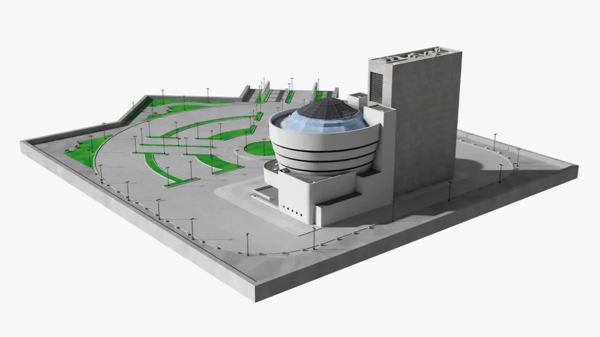Museum Complex on Prepped Site is a high quality, photo real 3d model that will enhance detail and realism to any of your rendering projects. The model has a fully textured, detailed design that allows for close-up renders, and was originally modeled in 3ds Max 2020 and rendered with V-Ray. Renders have no postprocessing!