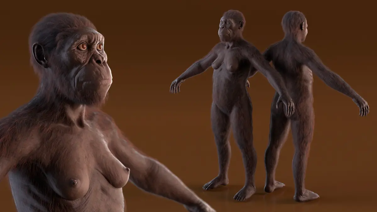 Museum-Grade Replica of Prehistoric Australopithecus Female Black Fur for Maya is a high quality, photo real 3d model that will enhance detail and realism to any of your rendering projects. The model has a fully textured, detailed design that allows for close-up renders, and was originally modeled in Maya 2018 and rendered with V-Ray. Renders have no postprocessing!