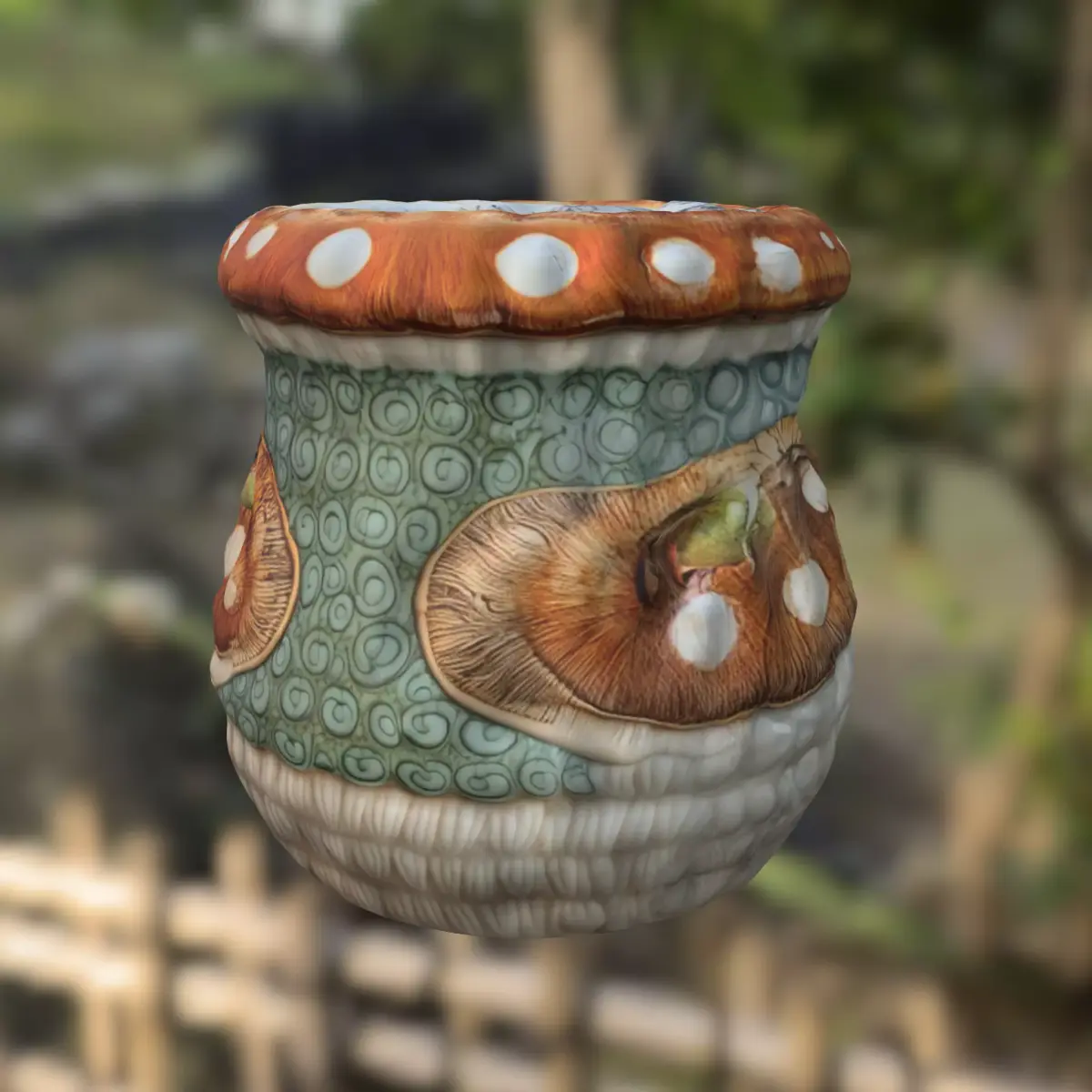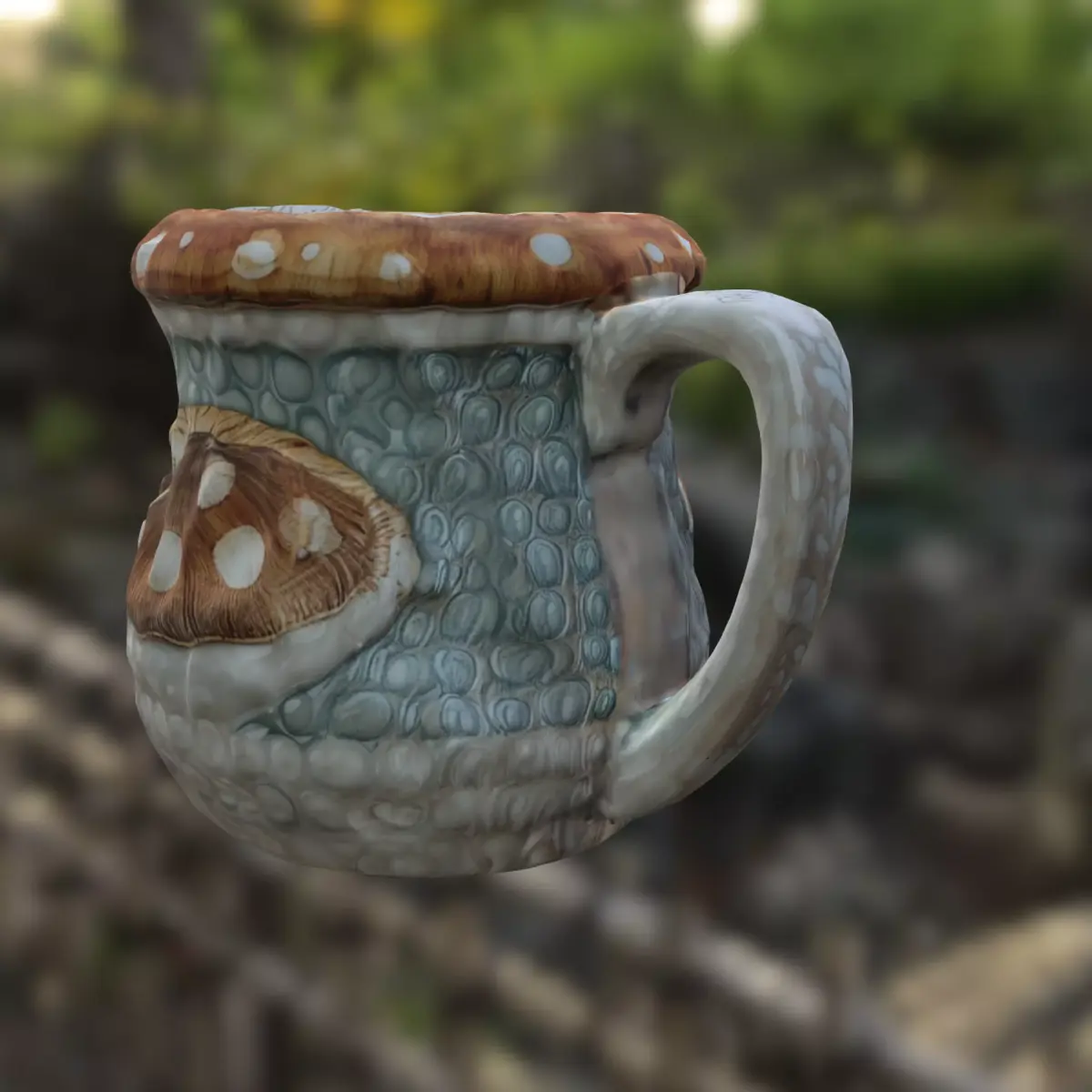 This whimsical 3D model depicts a fantasy-themed mushroom mug, ideal for magical or alchemy-based settings. With intricate textures, stylized design, and mushroom motifs, it's perfect for use as a potion cup, collectible item, or decorative asset in games like Skyrim mods, Minecraft Java (with custom assets), Roblox, The Sims 4 (CC), and Unity or Unreal fantasy RPGs. Also suitable for 3D printing as a display item, fantasy mug replica, or tabletop accessory.