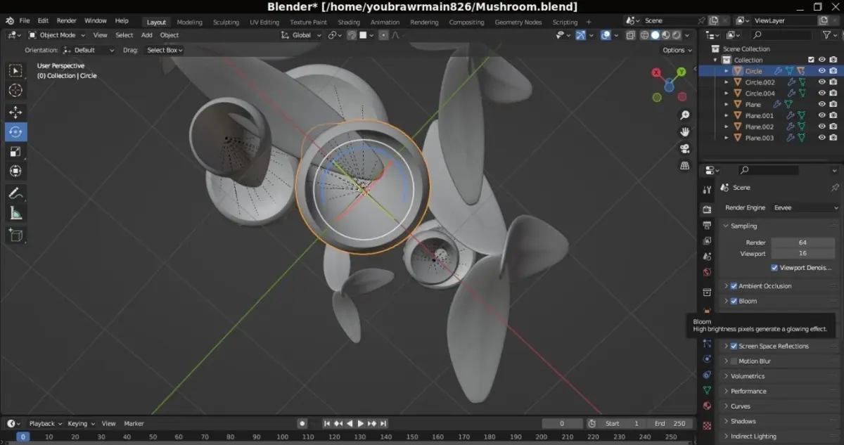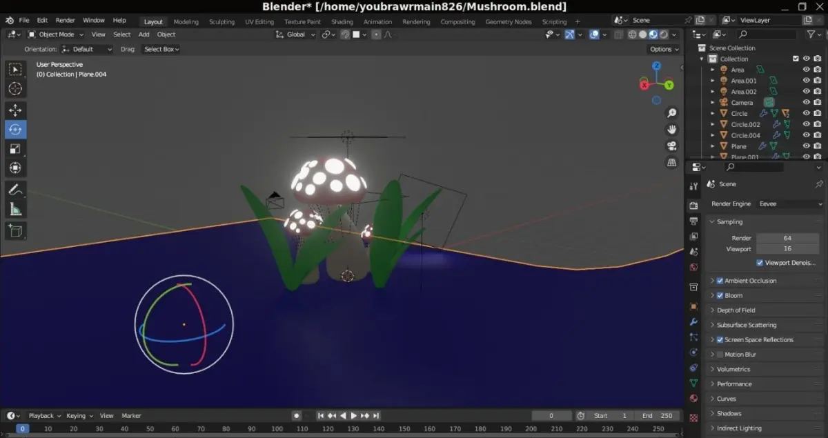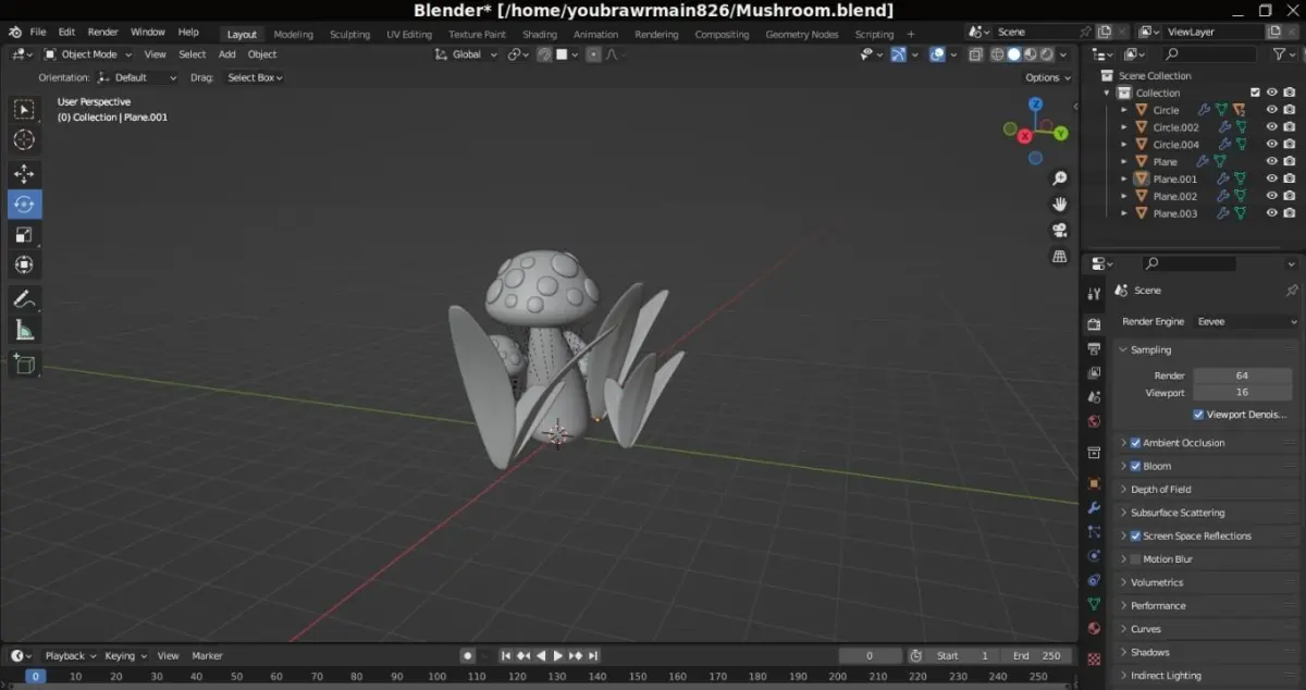 3 Mushroom with petals, and neon light. It's render Mushroom but you can take normal Mushroom with no rendering. You can change color on blender, me put manny export diferent files for you
