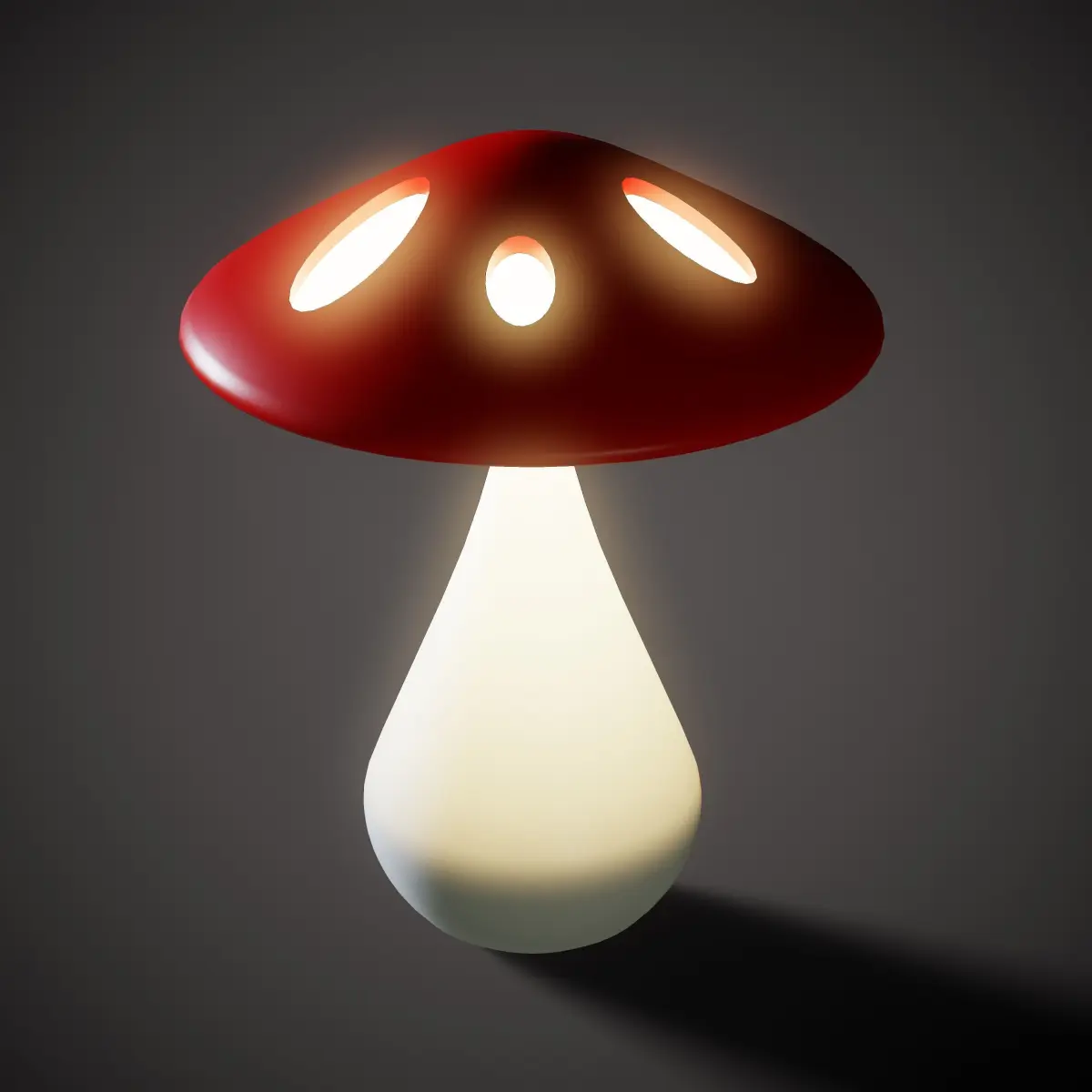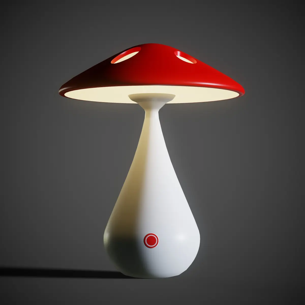 This is a realistic 3D model of a night light designed in the shape of a mushroom. Ideal for use in interior visualizations.