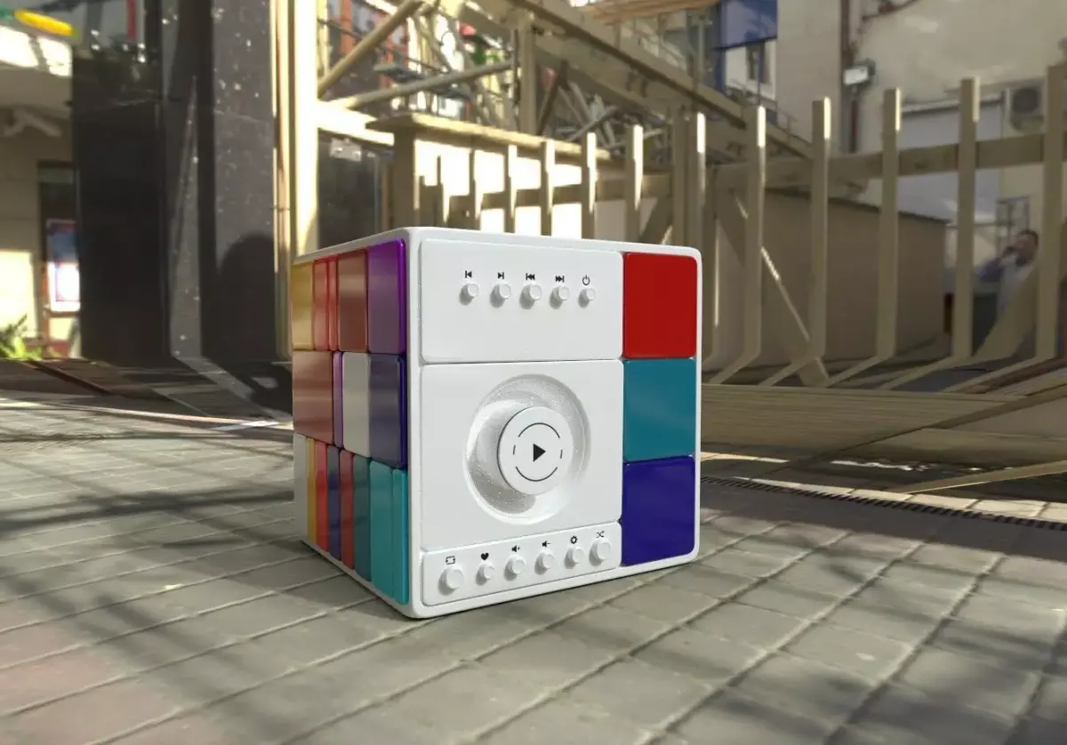 A contemporary music centre in matte white, with interchangeable panels in different colors, allowing for customization to suit your home decor style in the present day.