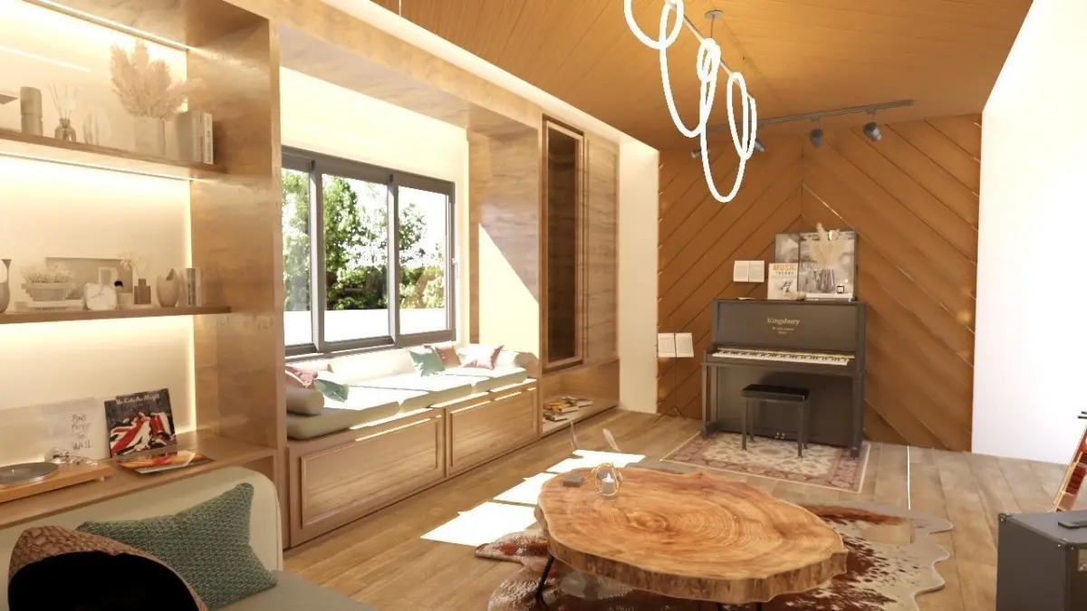 It's a full scene for a 6*4 cozy room consists of wooden floor + wood panels on walls and the ceiling firstly there is a kingburry piano fine texture, a window couch where the owner can relax while listening to music on the gramaphone which come with vinyl set with the most famous loved rock bands on top of that a full guitar set les paul sun burst with all the Boss pedals you need and a mrshal amp. on the couch side 3 guitars textured as the original ones fender strat, Ibanez & a red matt les paul beside a library full of decorations all the scene is rigged with sun light and artficial v-ray lights i wish you enjou it.thanks in advance.