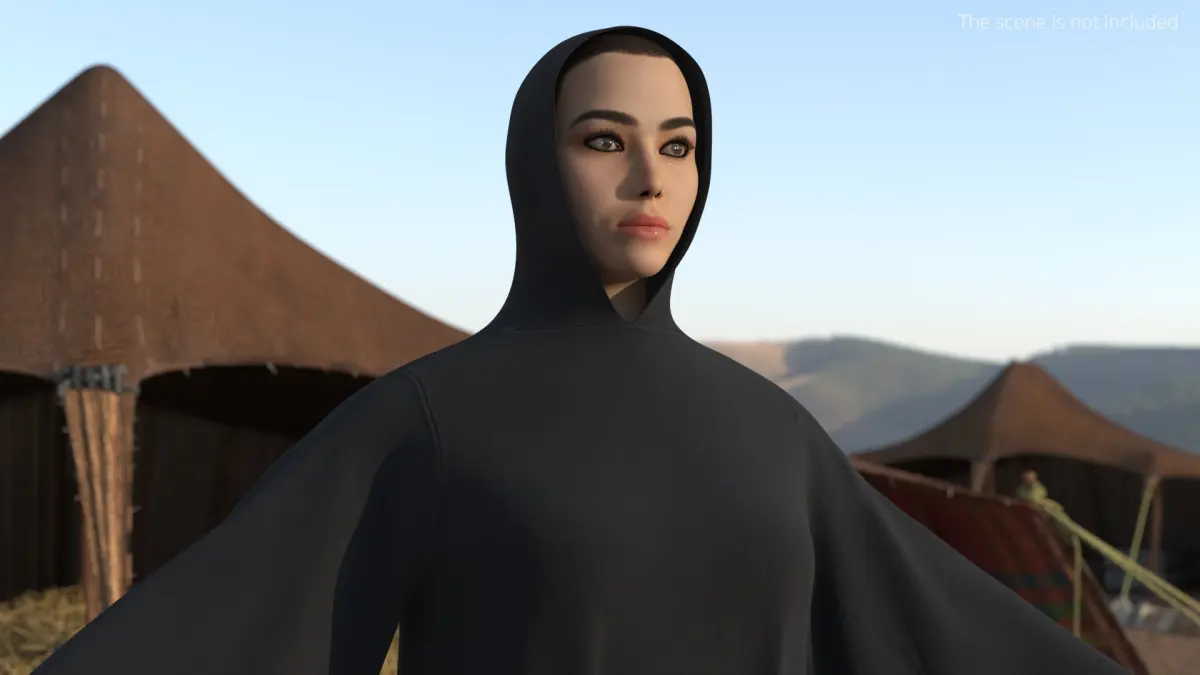 Muslim Woman in Hooded Abaya Black is a high quality, photo real 3d model that will enhance detail and realism to any of your rendering projects. The model has a fully textured, detailed design that allows for close-up renders, and was originally modeled in 3ds Max 2020 and rendered with V-Ray. Renders have no postprocessing!