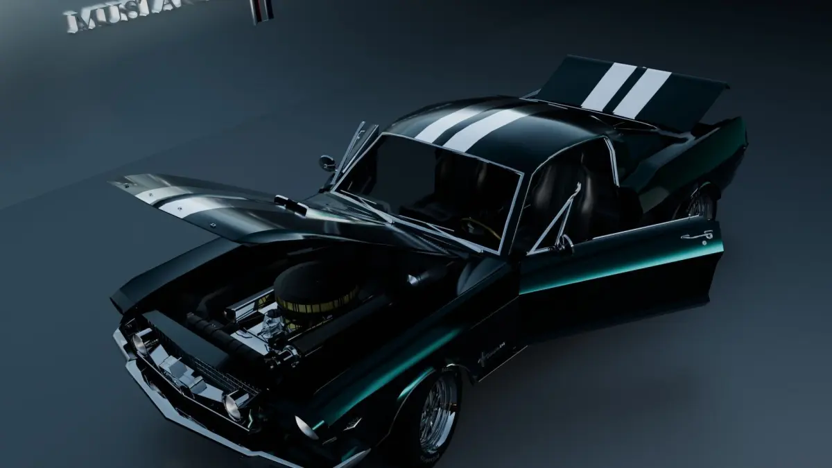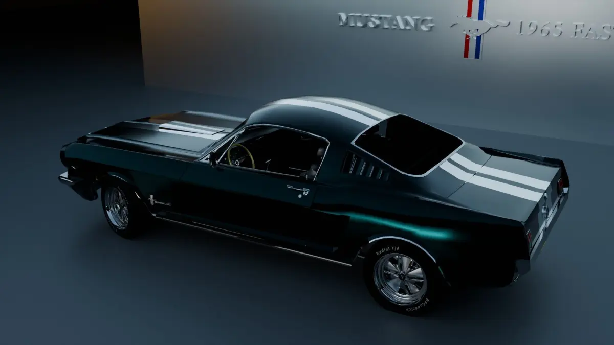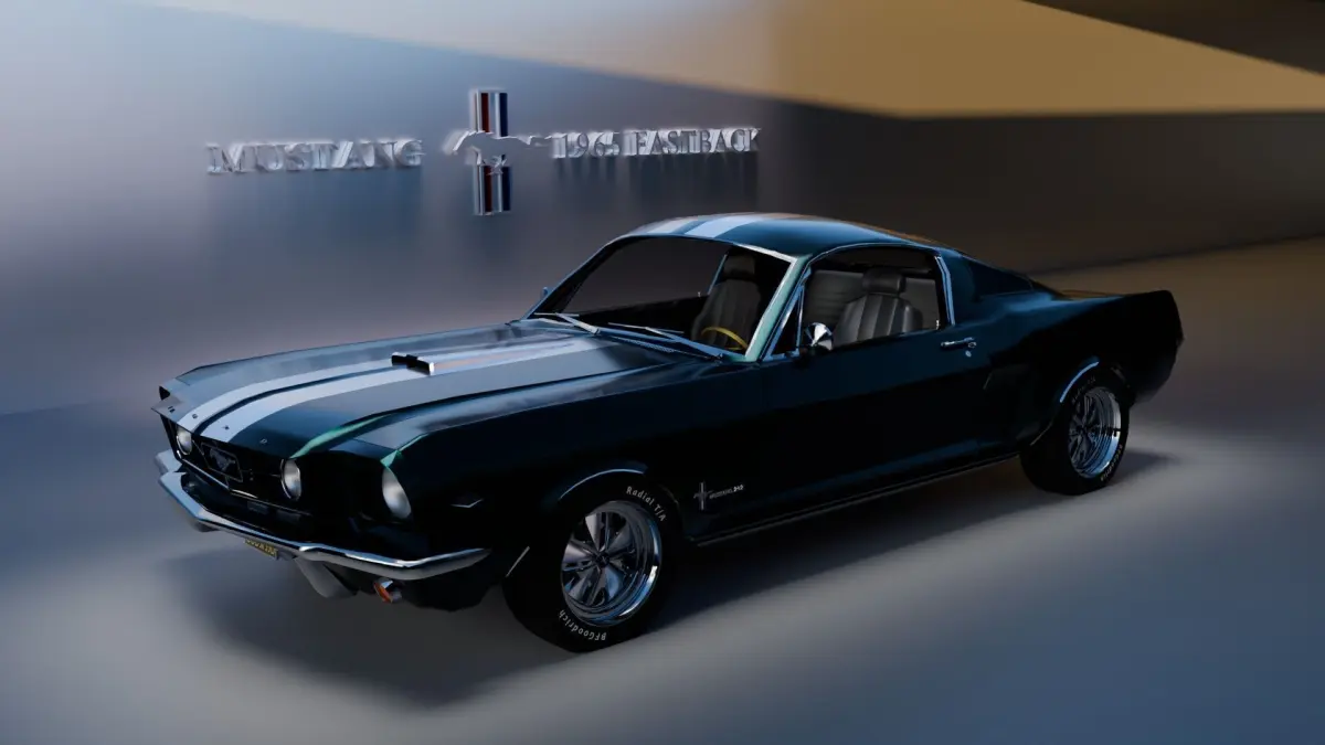 This is a rigged 3d model of “Mustang 1965 Fastback”.I tried to replicate the Real car by using the images provided on https://www.coyoteclassics.com/vehicles/683/1965-ford-mustang-fastback of a 1965 Ford Mustang Fastback.There are no textures images in the model to allow importing the model in different 3d software easily.I have created vertex groups in the model if you want to select specific part of model(i.e- door, hood, engine, tyers) and edit or remove them.The paint job on car can be changed to remove white strips on car.