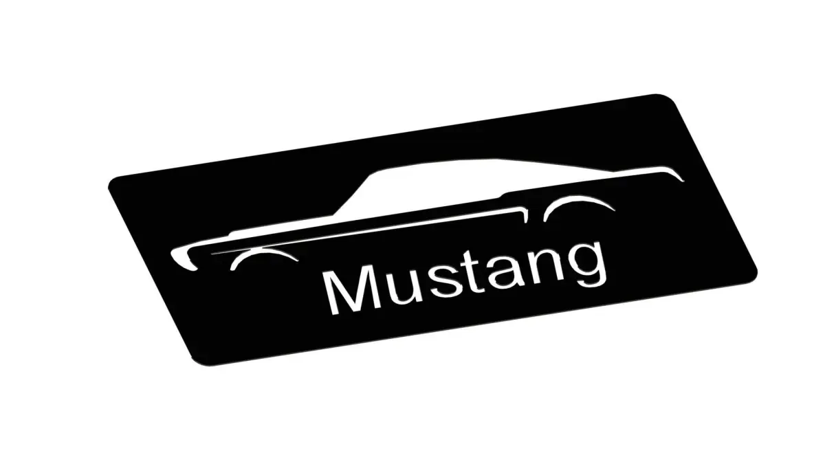 Every intricate element of the decorative plaque is rendered with precision, down to the fine lines and curves that compose the Mustang's unmistakable form. The model features intricate textures and shading, simulating the interplay of light and shadow that accentuates the Mustang's dynamic shape. The laser-cut image is framed by a meticulously designed border that complements the Mustang's aesthetic, adding an extra layer of visual appeal to the overall composition.