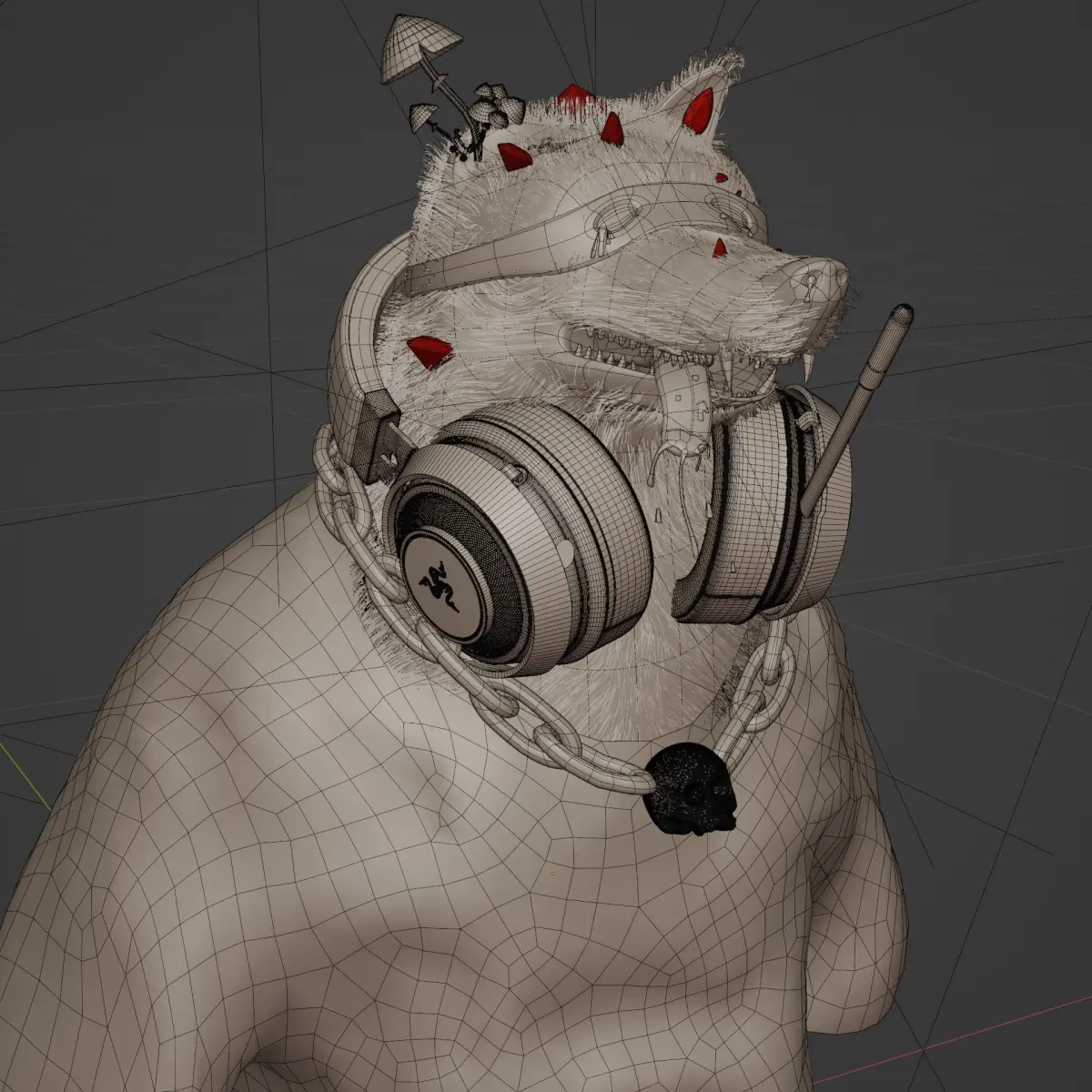 The radioactive mutant wolf with mushrooms and rubins all over the body with shining green and radioactive eyes. Used blender hair mod and rendered in Cycles v3.
