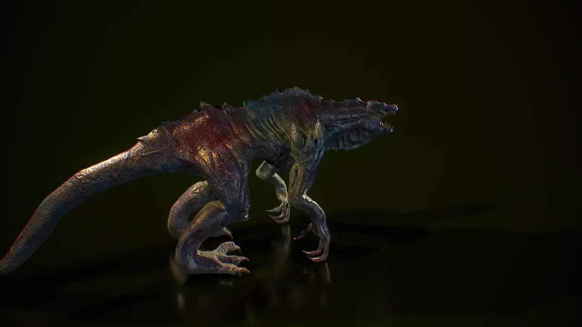 - Mutated quadruped creature with reptilian and alien-inspired