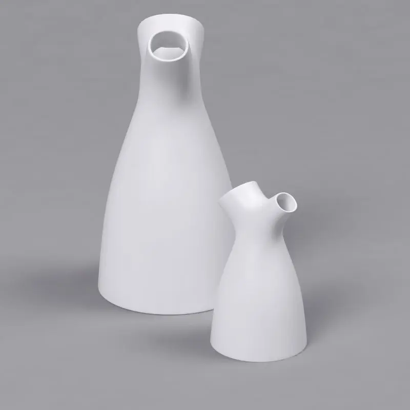 FLOW is a decorative milk jug available in two sizes intended for use on the coffee table. The jug's elegant design is based on functional anatomy and creates an attractive item with an organic wholesome quality. FLOW is produced in handcrafted new bone china.