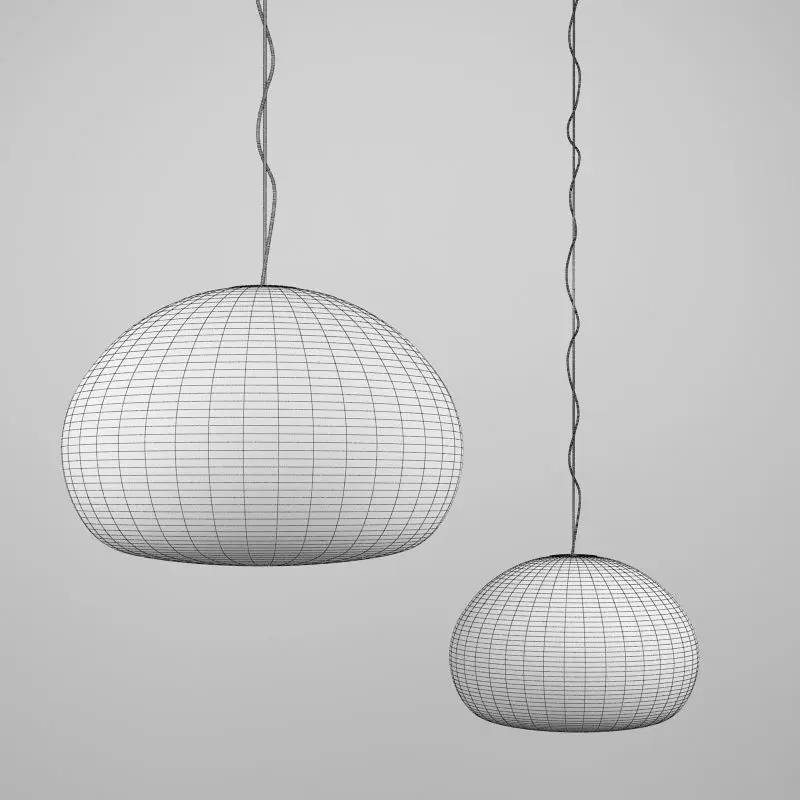 This is a model of the Muuto Fluid Lamps in two sizes.White silk mat opal glass, Lid in Nylon66 with Fibre glass.