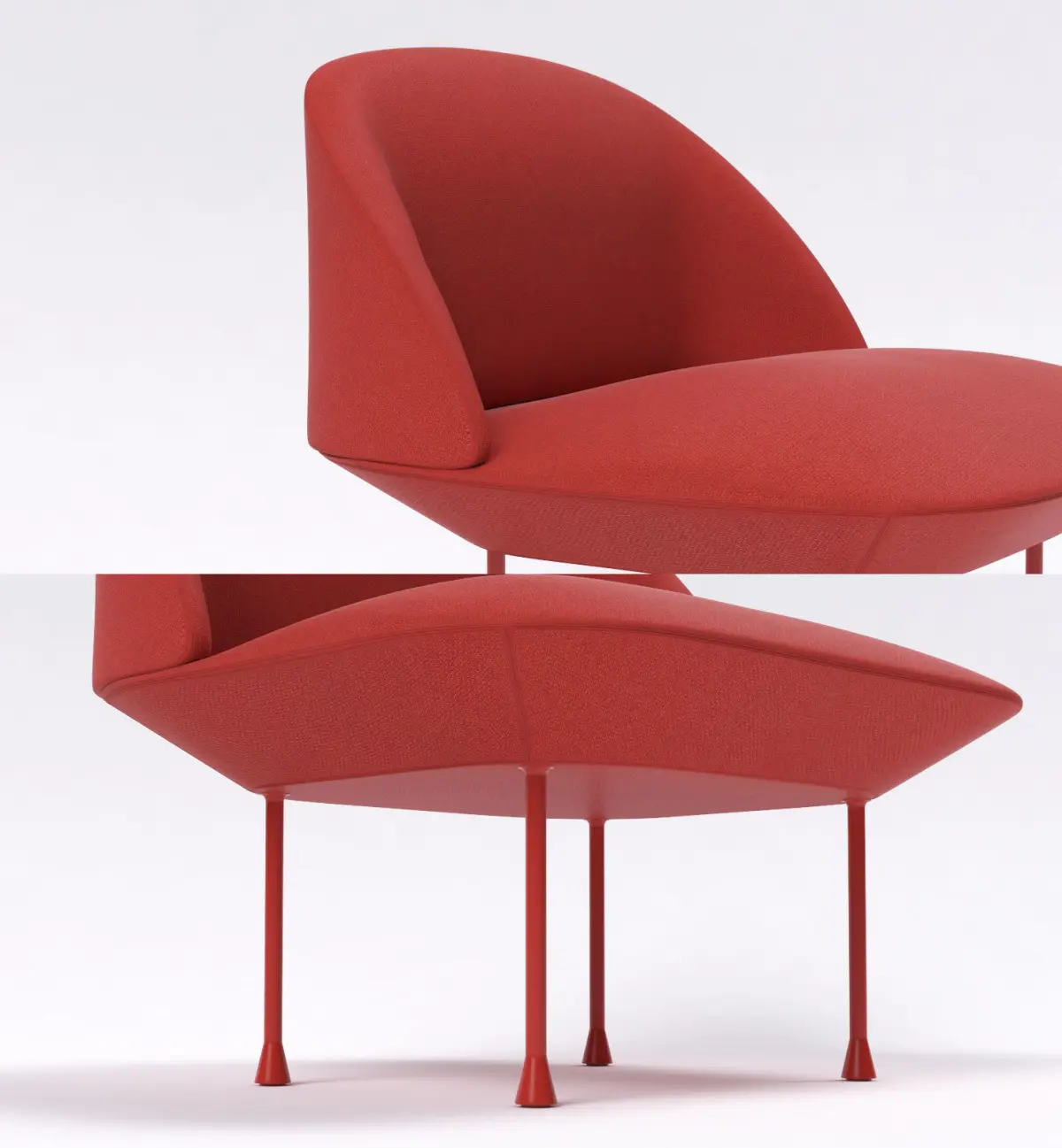 Material: Inner frame of steel, Nozag springs, legs of aluminum with powder coated surface and fabric from Kvadrat.