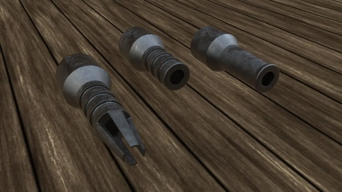 Model - Gun Flash Hider01 - Poly Count - 992 Gun Flash Hider02 - Poly Count - 912 Gun Flash Hider03 - Poly Count - 432