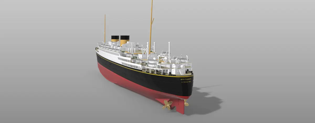 A very detailed and accurate model of the MV Britannic, the last White Star Line liner to leave service, optimized for resin printing at a 1/600 scale basis although very easily printable at larger or smaller scales. Full hull and waterline versions are included. This a larger, more detailed version with hull plating, scribed decks, separate funnels and masts.
