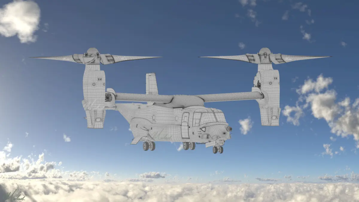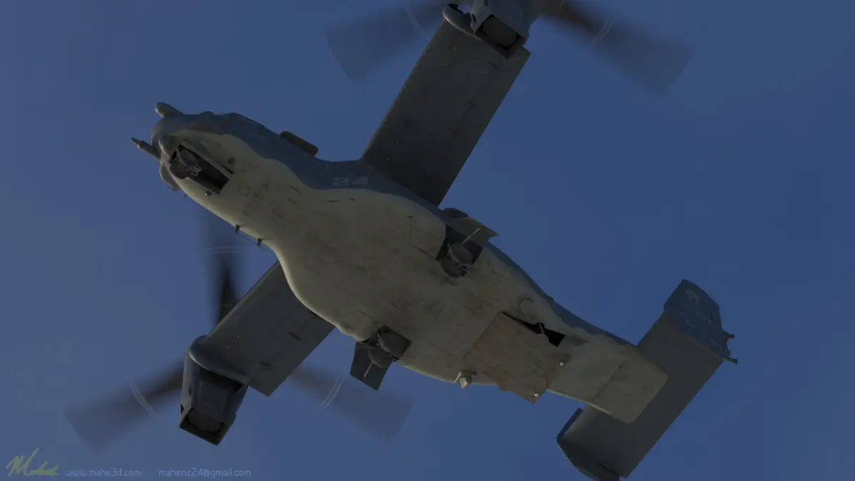 Mv22-Osprey 3D model asset with rigged, ready to animate and do renders. Texture and lookdev file is in Maya 2019, Arnold with 4K UDIM Texture resolution. Also provided ma file.