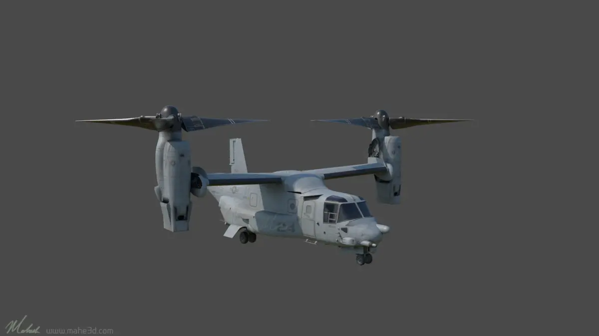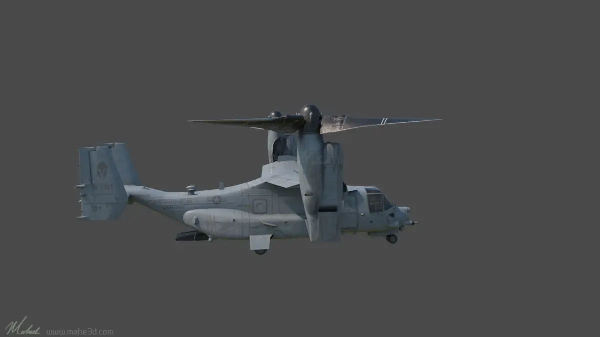 Mv22-Osprey 3D model asset with rigged, ready to animate and do renders. Texture and lookdev file is in Maya 2019, Arnold with 4K UDIM Texture resolution. Also provided ma file.