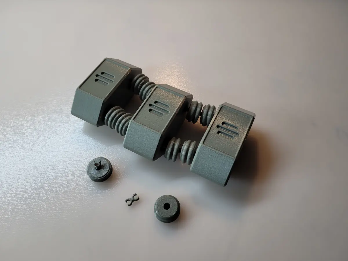 The number of the chains is same as shown in the Rogue One movie. The chain can be shorter.For the Energy-convert-side-cover component, use translucent filament (if you want to insert lights into the Energy-converter component).The front part of the Front chamber slide is sliding. When assembling it, you have to slide it first and then glue the Front chamber circles.