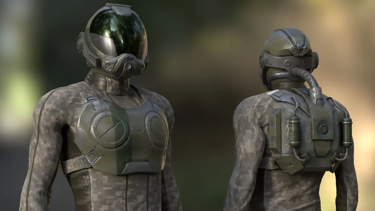MX01 Sci-Fi Suit Male low-poly 3d model rigged ready for Virtual Reality (VR), Augmented Reality (AR), games and other real-time apps.