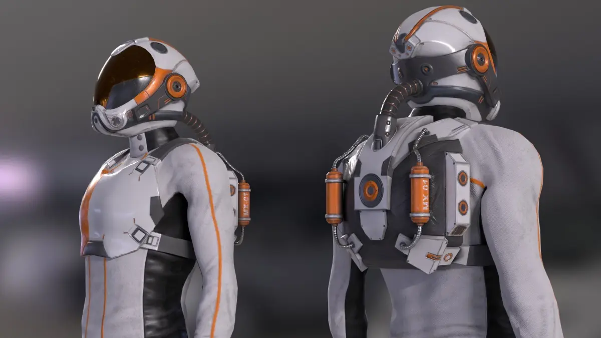 MX01 Sci-Fi Suit Male low-poly 3d model rigged ready for Virtual Reality (VR), Augmented Reality (AR), games and other real-time apps.