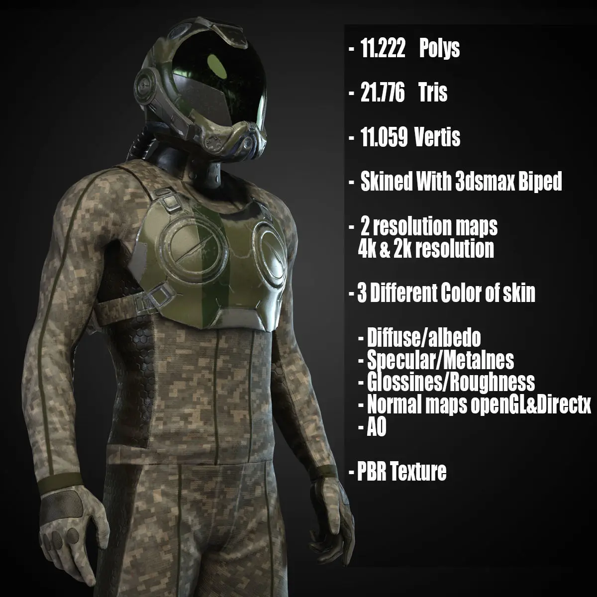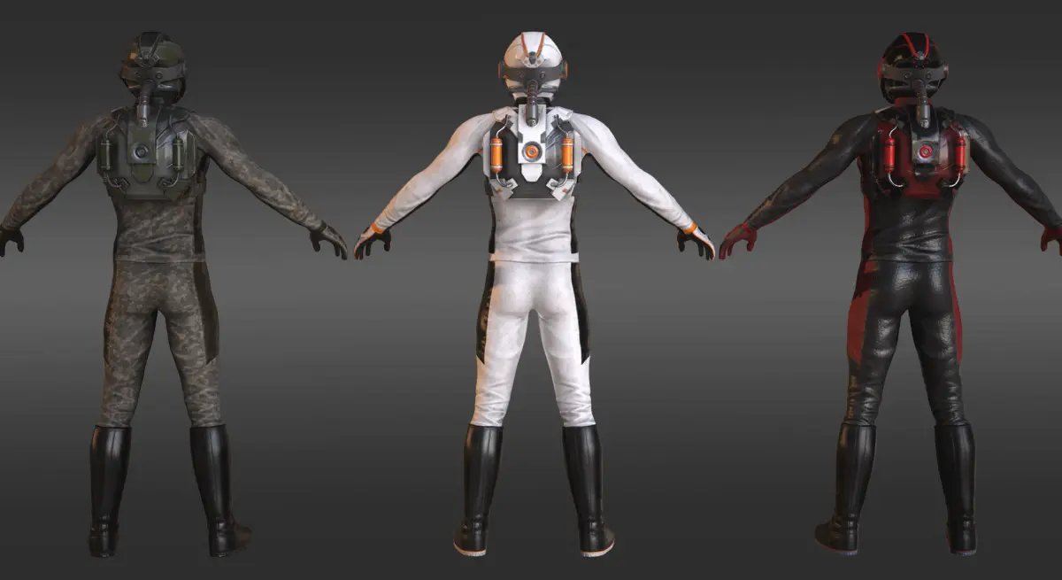 MX01 Sci-Fi Suit Male low-poly 3d model rigged animated ready for Virtual Reality (VR), Augmented Reality (AR), games and other real-time apps.