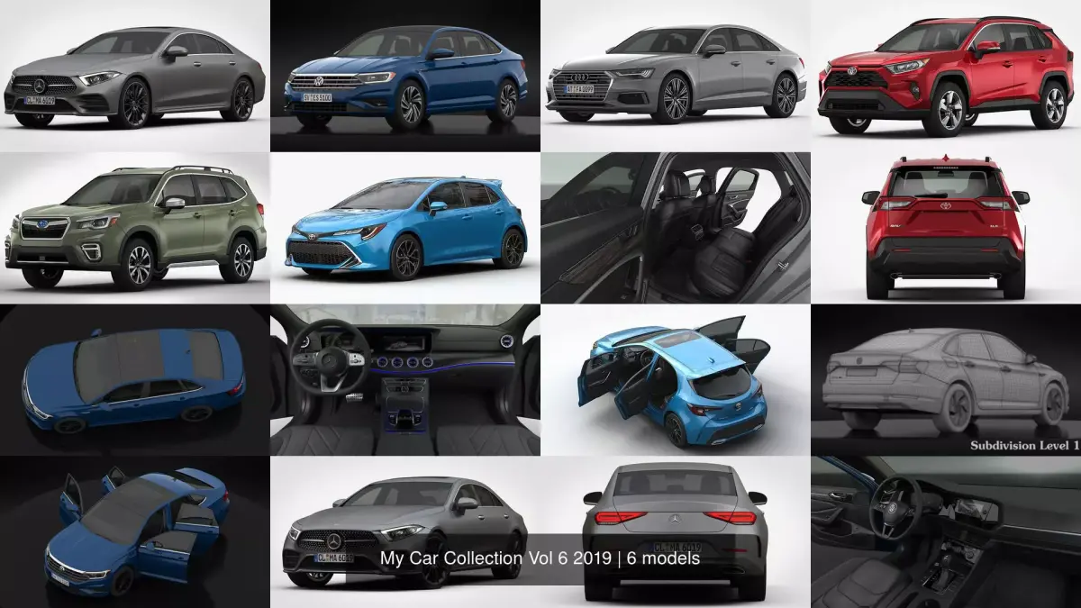 Audi A6Toyota Corolla HatchbackSubaru ForesterVolkswagen JettaMercedes-Benz CLSToyota Rav4High quality models with detailed interior & exterior.