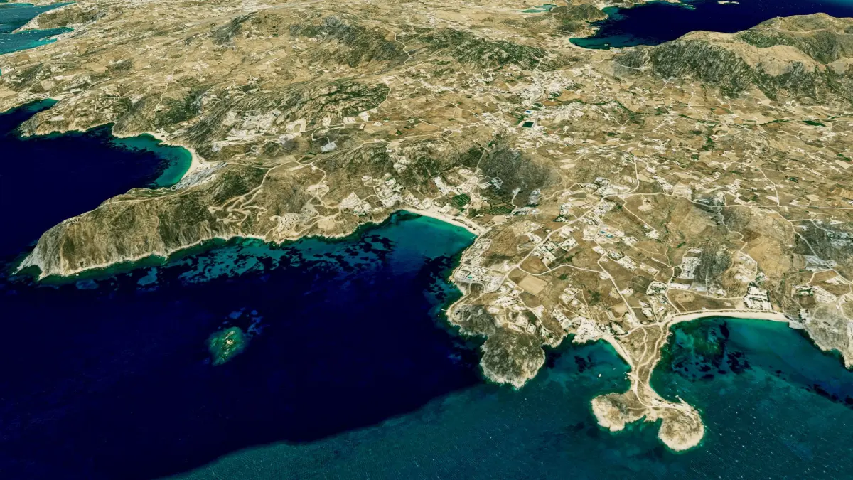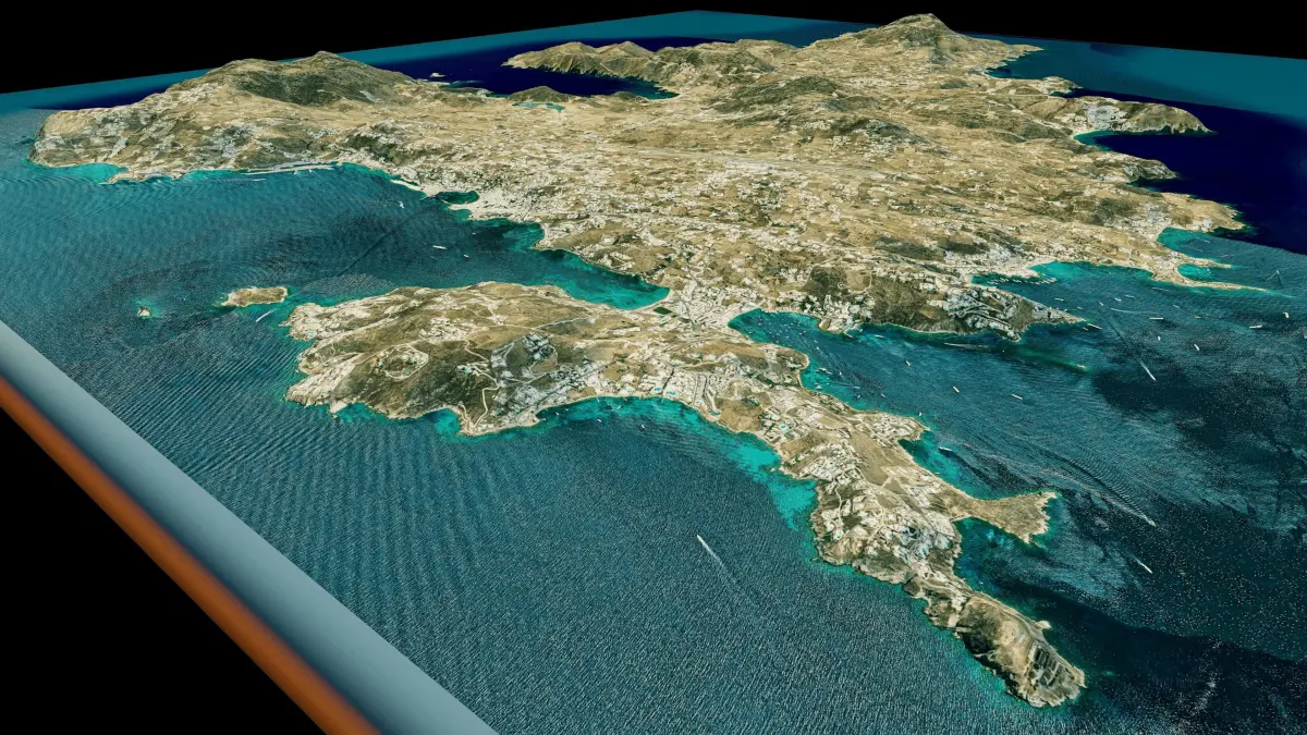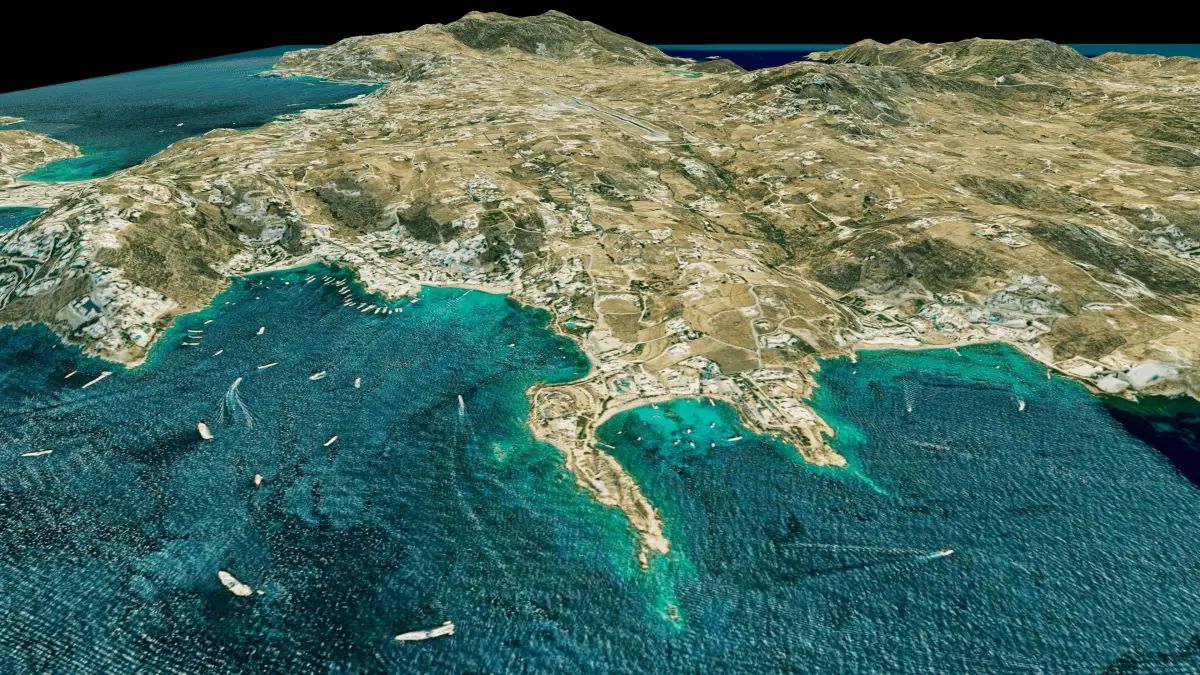 Mykonos Island full 3d model terrain. 3d model of the Island of Mykonoswith its landscape of mountains, beaches and forests