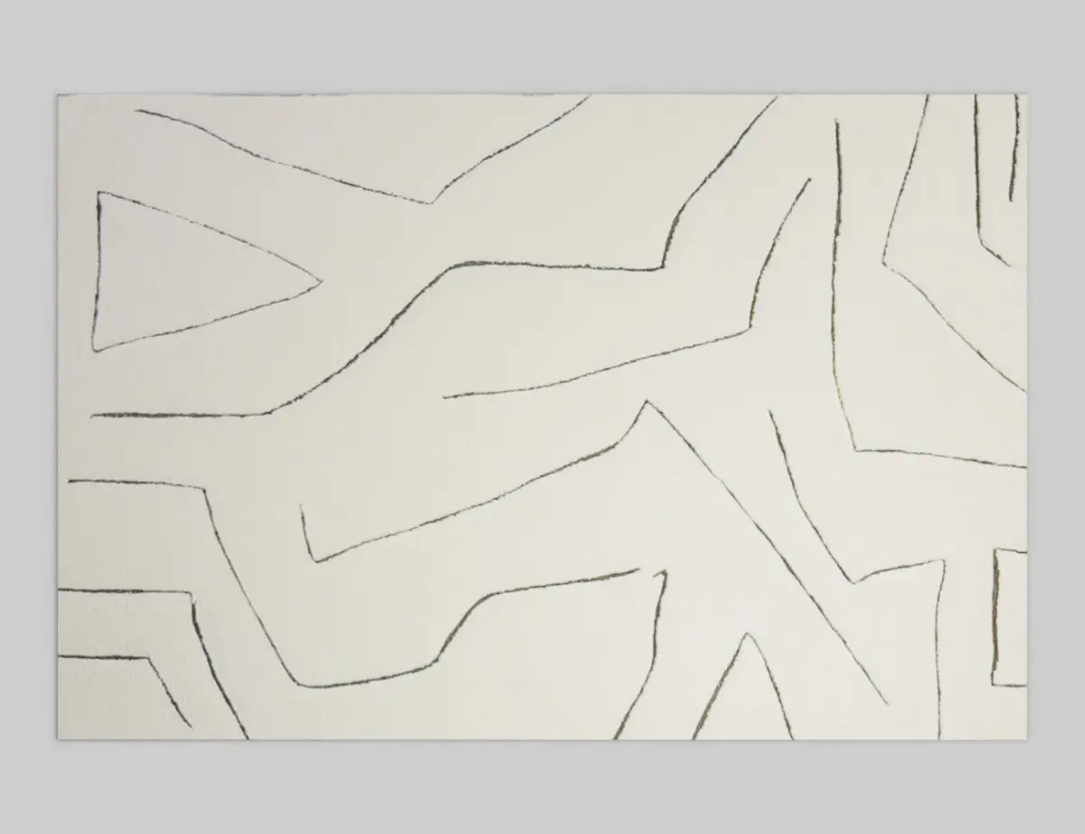 Designed by New York-based textile designer Aelfie Oudghiri , hand-knotted New Zealand wool rug draws inspiration from some of Oudghiri's favorite Moroccan patterns. The high-low design emerges from a plush shag pile that goes through an extensive washing process for a super-soft, almost felted finish. Extremely cushy underfoot. CB2 exclusive. How will it look in your room? 12x12 rug samples are available in stores for a fee refundable upon return of the sample. Hand-knotted Designed by Aelfie Oudghiri New Zealand wool Pile height: 1 inch Shedding will occur for the first 2?3 months and will subside over time All-surface rug pad recommended Blot spills immediately Vacuum regularly; professional cleaning recommended Clip if snags occur; do not pull Made in India Myriad Hand-Knotted Warm White New Zealand Wool Area Rug 6'x9'
