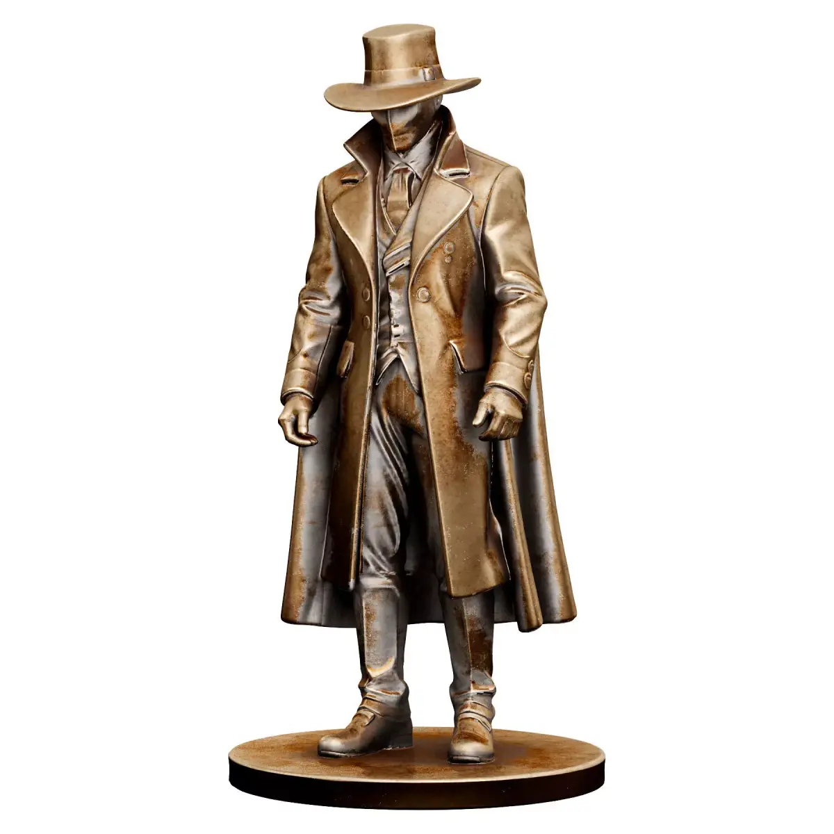 Realistic 3D sculpture of a mysterious gentleman with timeless style and dramatic presence – ideal for artistic projects, cinematic scenes, and vintage decoration renders.Clean geometry and realistic materials for professional-quality visualization.Optimized for rendering (Corona, V-Ray)Formats: MAX + OBJUnit: CentimetersVersion: 2016