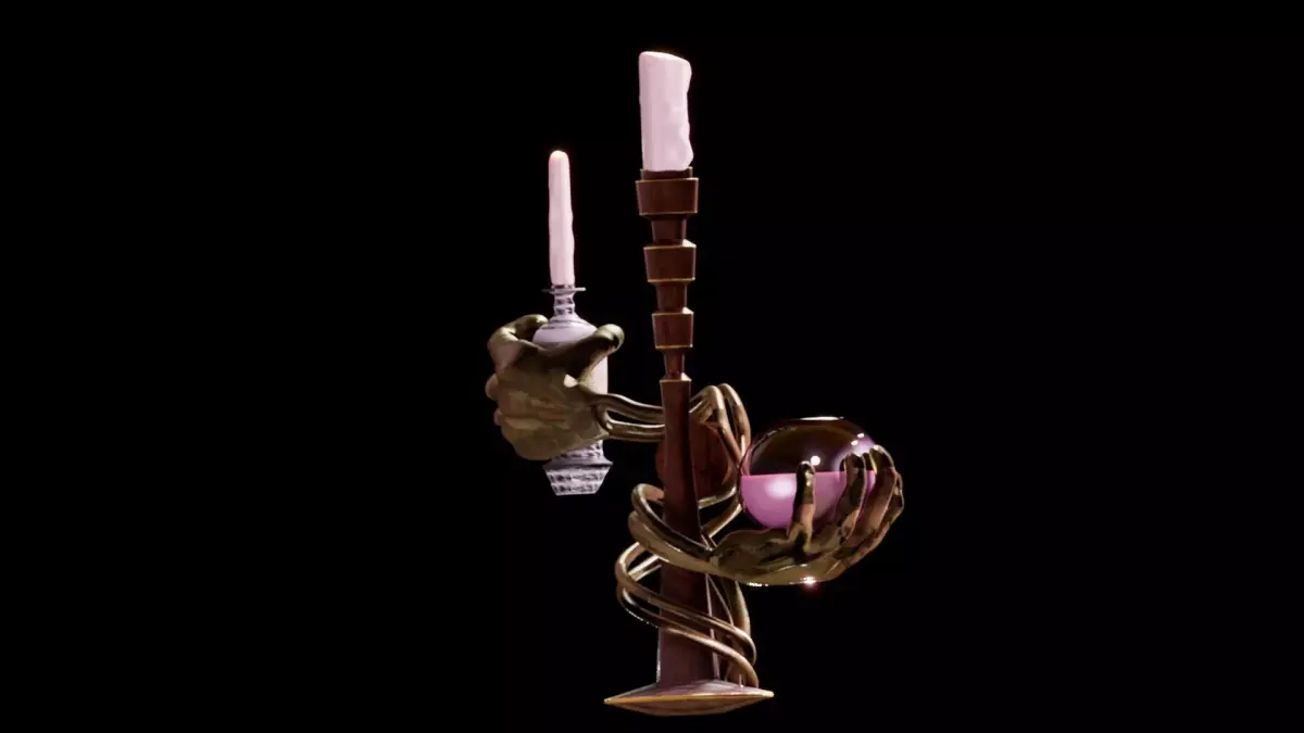 Bring magic and mystery into your scene with this highly detailed stylized bronze candle holder, featuring skeletal hands holding a glowing crystal orb and a vintage engraved candle base.This unique fantasy prop is perfect for environments such as wizard rooms, alchemy labs, gothic interiors, or magic-themed games.