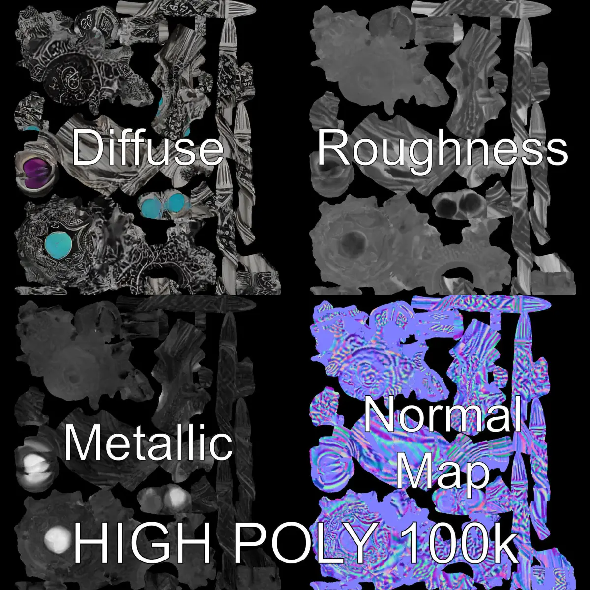 This Mystic Scepter model pack offers three levels of detail: low-poly for mobile, medium-poly for environments, and high-poly for production rendering. The high level of detail captures the intricate design of this ornate scepter, complete with decorative gemstones. Perfect for fantasy games, cinematic renders, or virtual reality experiences, this model's versatility makes it a valuable asset. With PBR textures including Diffuse, NormalMap, and reflection/roughness/metallic maps, this model is ready for any modern rendering engine. Textures are 4096x4096 in size, ensuring high-quality visuals. All models are accurately unwrapped with no overlapping UVs. The first image is the reference used for creating the 3D model. It is important to carefully evaluate the quality of the model by examining the preview images that display the topology and polygonal mesh. These previews (WIRE and WEB 3D Preview) clearly demonstrate how accurately the model matches the original reference and how well the geometry has been executed. If you like this model, please give it a thumbs up and leave a comment!