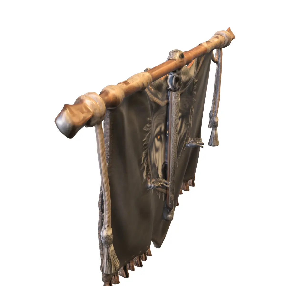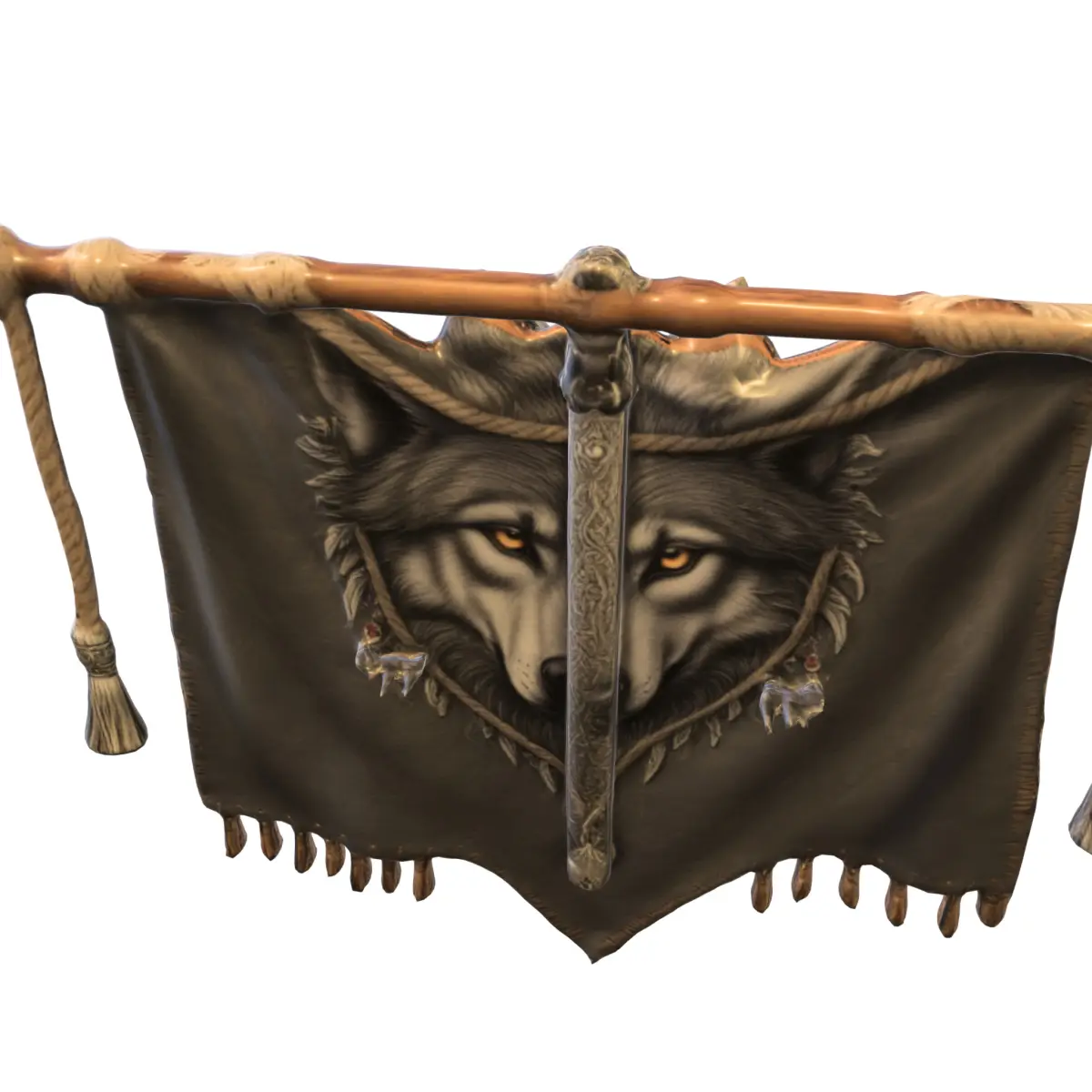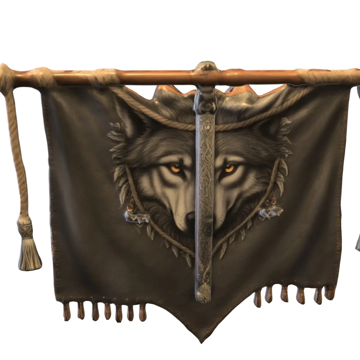The Mystic Wolf Banner is a premium 3D model featuring a regal wolf head adorned with mystical gemstones and tribal details. The leather-textured hanging cloth and decorative knots make it perfect as a faction insignia, wall prop, or decorative relic in fantasy RPGs or adventure games. This model is game-ready, optimized, and printable, suitable for both real-time rendering and collectible 3D printing.