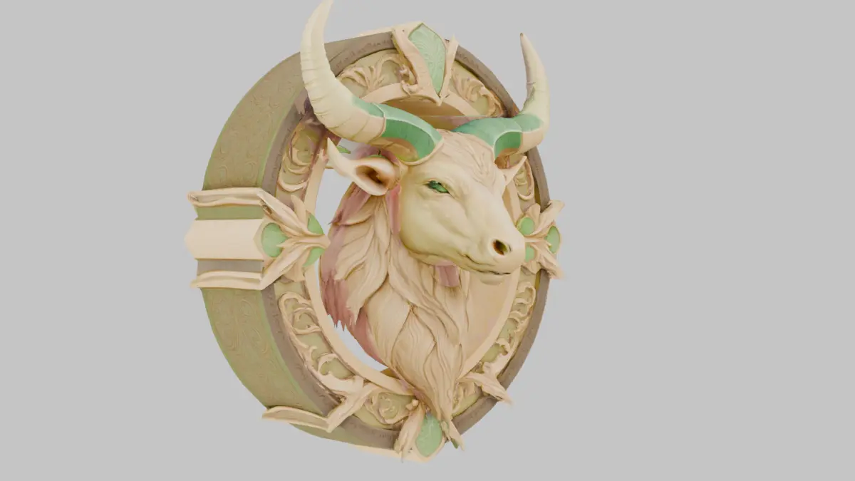 High-quality 3D model of a mystical bull emblem. This emblem is perfect for adding a touch of mythology and power to your 3D projects. The model is detailed and optimized for various applications, including games, animations, and visualizations. Its intricate design and symbolic representation make it a unique asset for any creative endeavor.