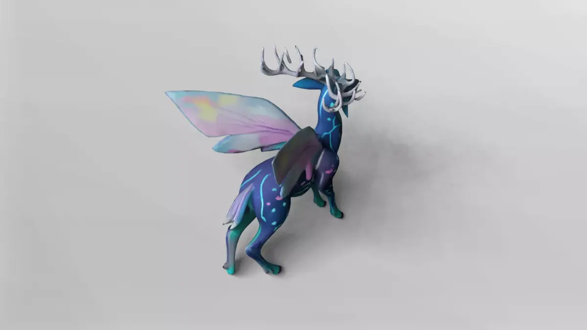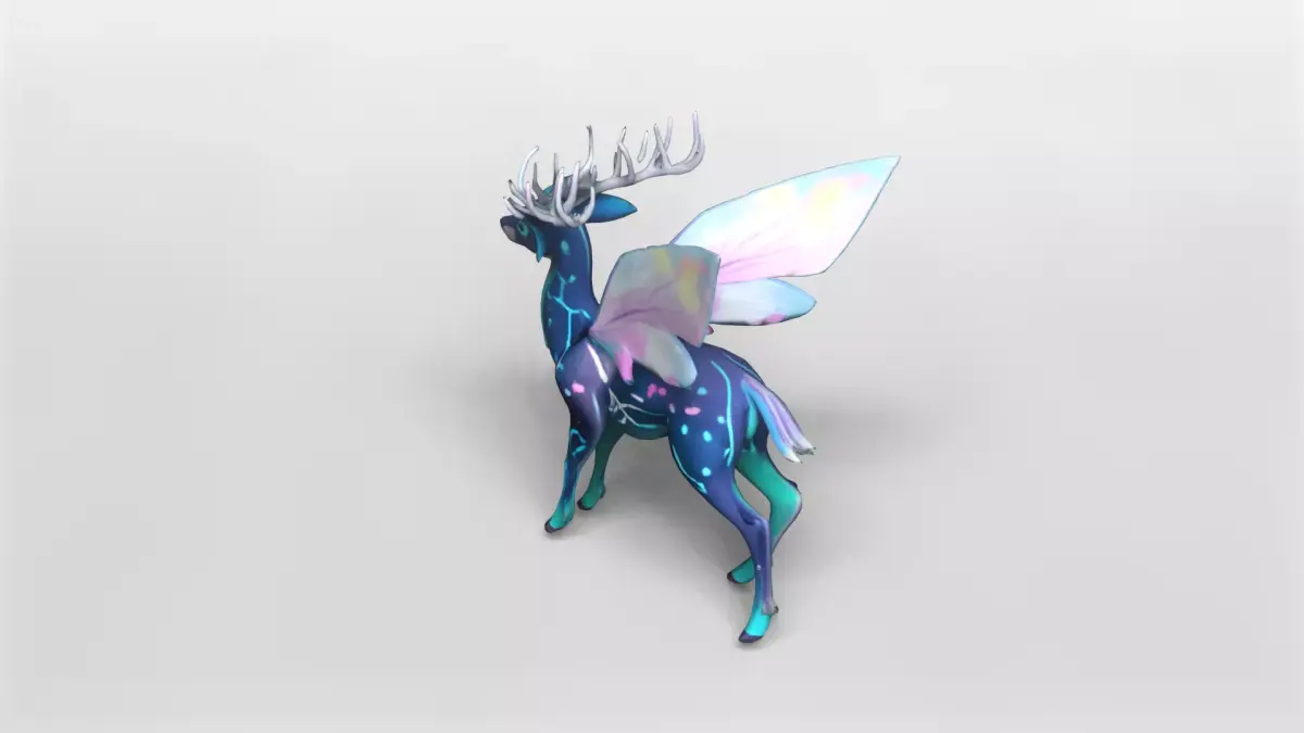 This stunning 3D model features a mystical fairy deer adorned with glowing neon patterns and delicate, translucent wings. The design blends elements of fantasy and nature, showcasing a sleek, elegant deer with intricate light-blue and purple markings that resemble constellations. The wings are beautifully detailed with a gradient of pastel colors, adding a magical and ethereal touch to the overall appearance.The model is fully textured with vibrant, high-quality materials that emphasize the glowing effects and smooth surfaces. The textures are included with the download, ensuring that the model looks exactly as shown in the preview. The lighting and shading are optimized to highlight the model's unique features, making it perfect for use in fantasy-themed projects, animations, or games.Available for download in the versatile GMB format, this model is easy to import and use in a variety of 3D software applications. Additionally, it is provided in FBX format, which is widely supported and ideal for game engines and animation workflows. Both formats include the complete texture set, allowing for seamless integration and customization.Whether you are creating a magical forest scene, a fantasy game character, or a digital art piece, this mystical neon fairy deer model offers a captivating and enchanting element. Its combination of natural elegance and otherworldly glow makes it a standout asset for any creative project.