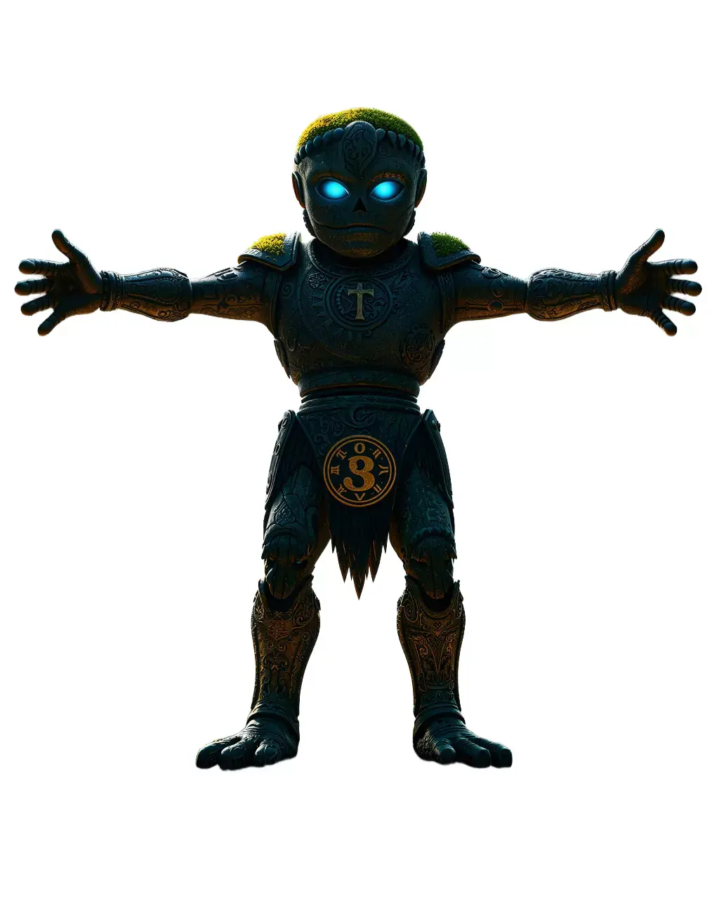 The Mystical Warrior Automaton is an intricately designed 3D model, featuring glowing blue eyes and ornate details. This character can enrich fantasy or sci-fi scenes, providing a unique blend of ancient and futuristic elements. Each model has 3 levels of detail: low-poly (1000 triangles for mobile), middle-poly (10,000 triangles for environment), and high-poly (100,000 triangles), which allows for the use of this model in production rendering (such as 3ds Max, Maya, Cinema4d, Blender, Vray/Corona/Cycles, and all others), game engines (Unity and Unreal compatible), and interactive presentations, providing a choice of detail based on the LOD System principle. Perfect for video games, animation projects, or concept art, its PBR textures offer realism and flexibility. All textures are 4096*4096 in size, enhancing the visual fidelity of the model. The model's textures are PBR, Diffuse, NormalMap, and reflection/roughness/metallic, which are suitable for any modern rendering engine. All models accurately unwrapped and have no overlapping UV. If you like this model, please give it a like and leave a comment.