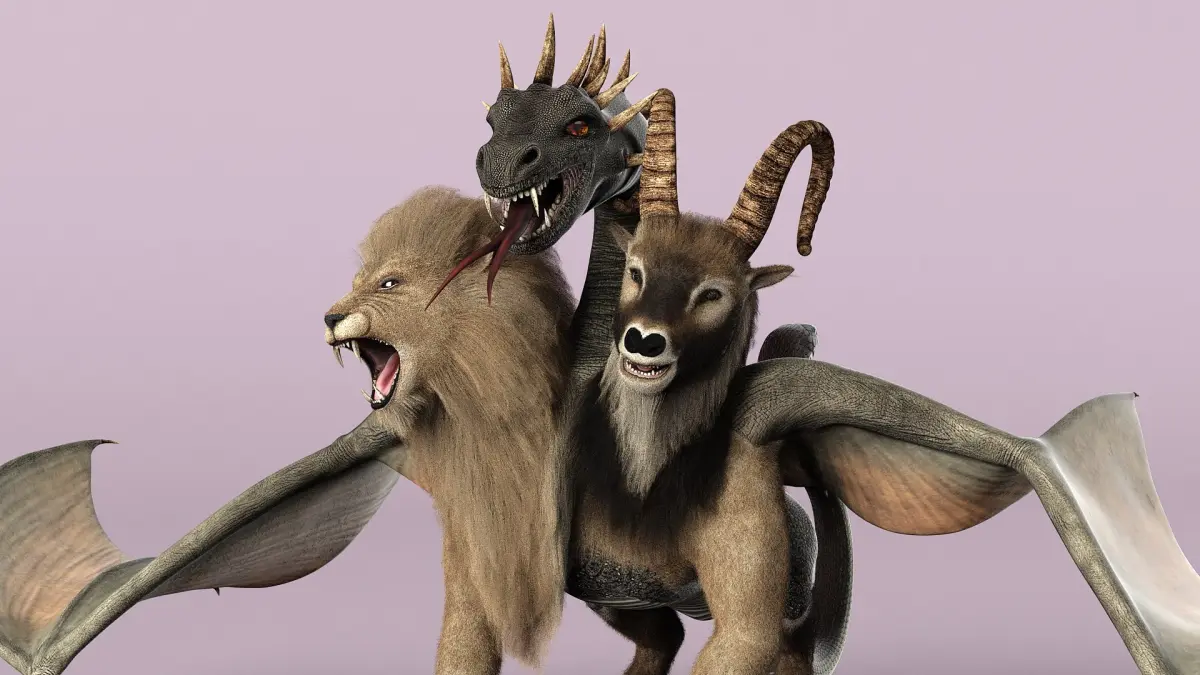 Mythical Chimera with Fur for Cinema 4D Hair and Fur is a three-dimensional model of fantasy chimera that is an Ancient Greek mythical monster (mythology type creature).