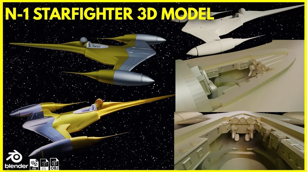 High resolution, realistic, fully detailed and textured exterior and interior of a SPACESHIP- N-1 Naboo starfighter 3d model