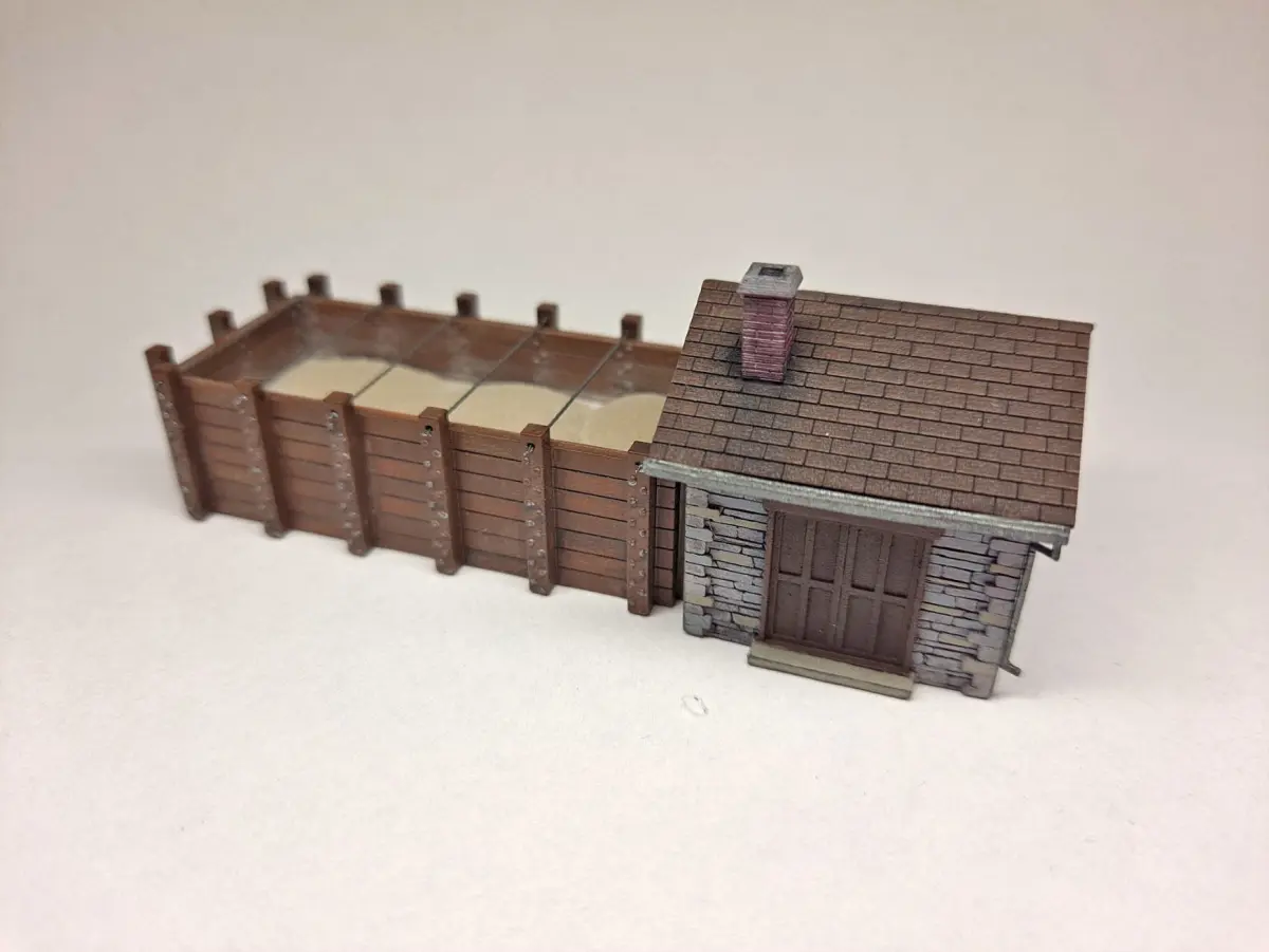 An N Scale Sand Drying house to go with my sanding tower also here on CGTrader. House and sand bin are separate and can be used for other buildings.