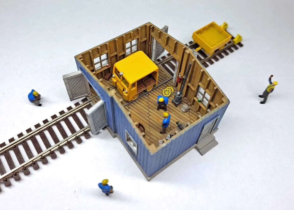 I made the shed a through shed so you can choose which side is the front. You don't have to put a run of track on both sides. I made it this way to allow parking of the wagons that are part of my speeder set.