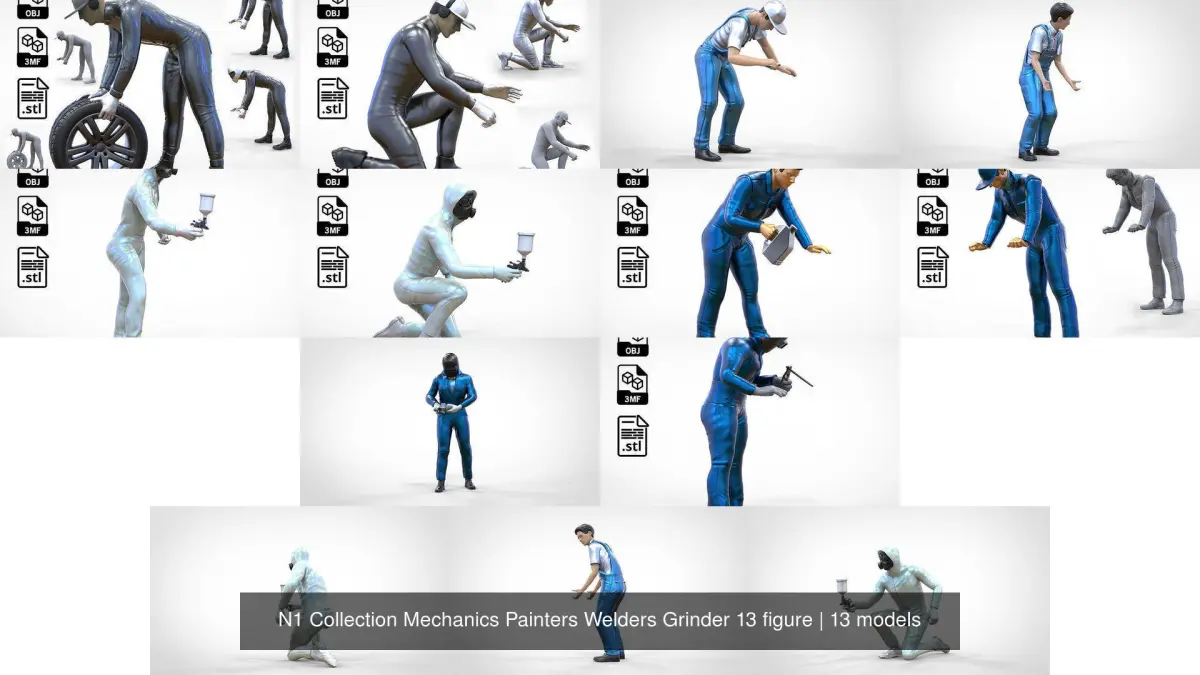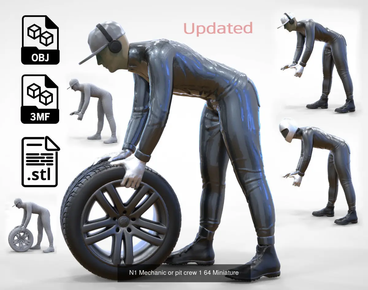 miniature, 3d print, decor, Mechanic crew, 1/64, pit crew, human, miniatures, driver, Grinder, Mechanical, Figurines, people, man, printable, car, Grinding, welder weld mask, Painter, welder