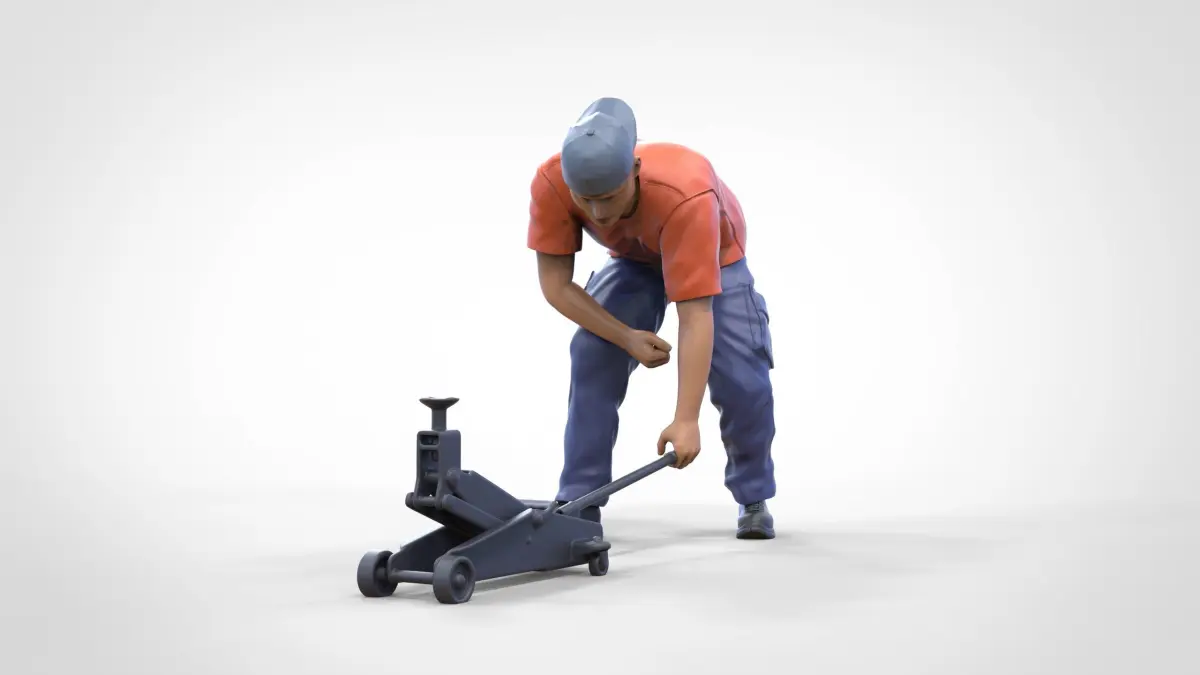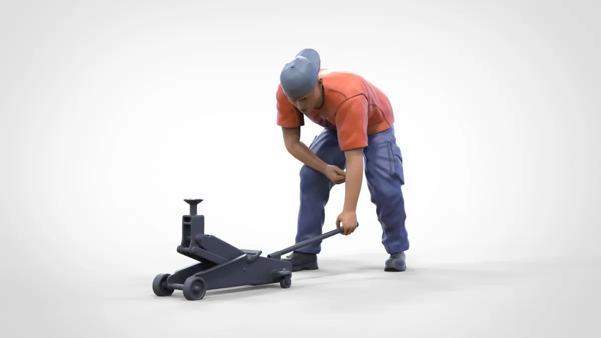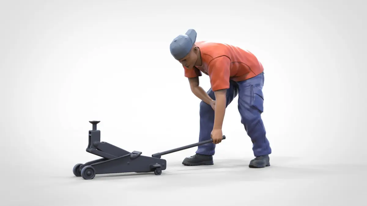 miniature , 3d print , decor , Mechanic crew , 1/64 , pit crew , human , miniatures , driver , Grinder , Mechanical , Figurines , people , man , printable , car , Grinding, welder weld mask, Hydraulic car jack