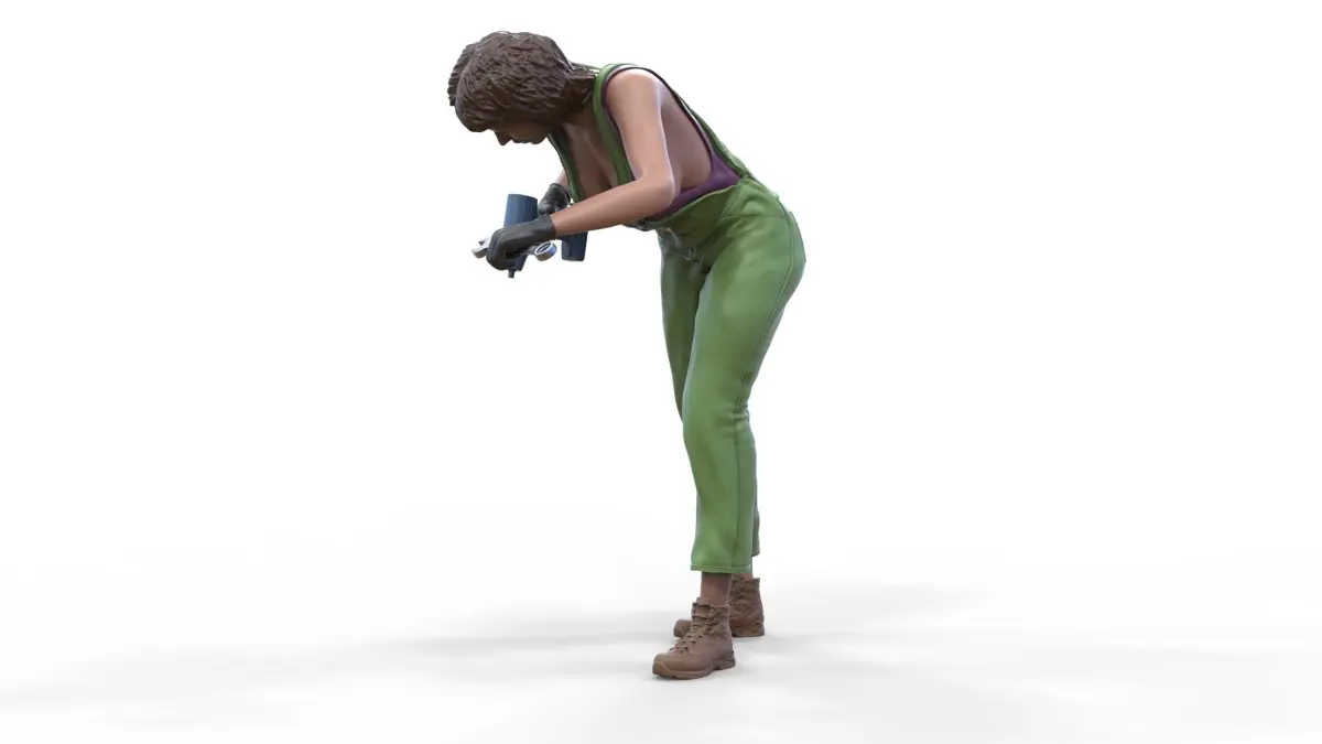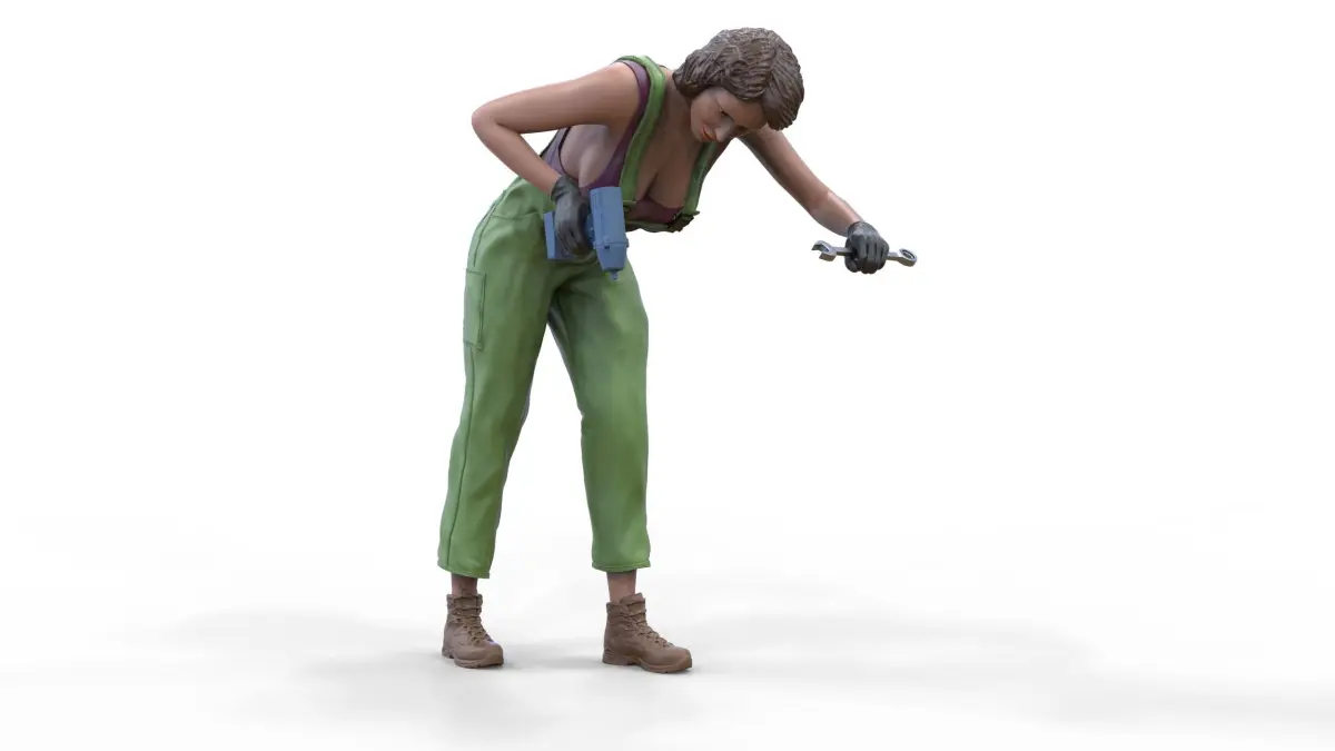 miniature, 3d-print, miniatures, Figurines, 3dp-Miniatures, Diorama, Figurine, Diecast, 3d-print-Figures, mechanic, woman-mechanic, tire, car, Mechanics, jumpsuit, woman, worker, 3dprint, hat