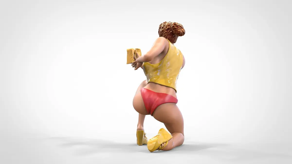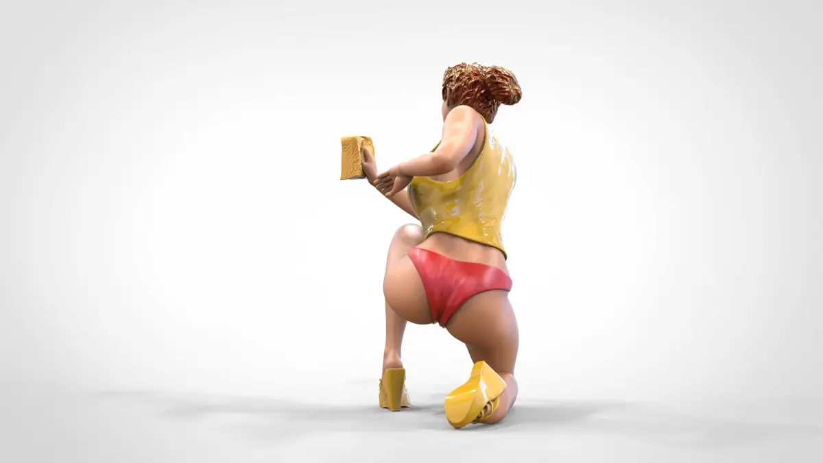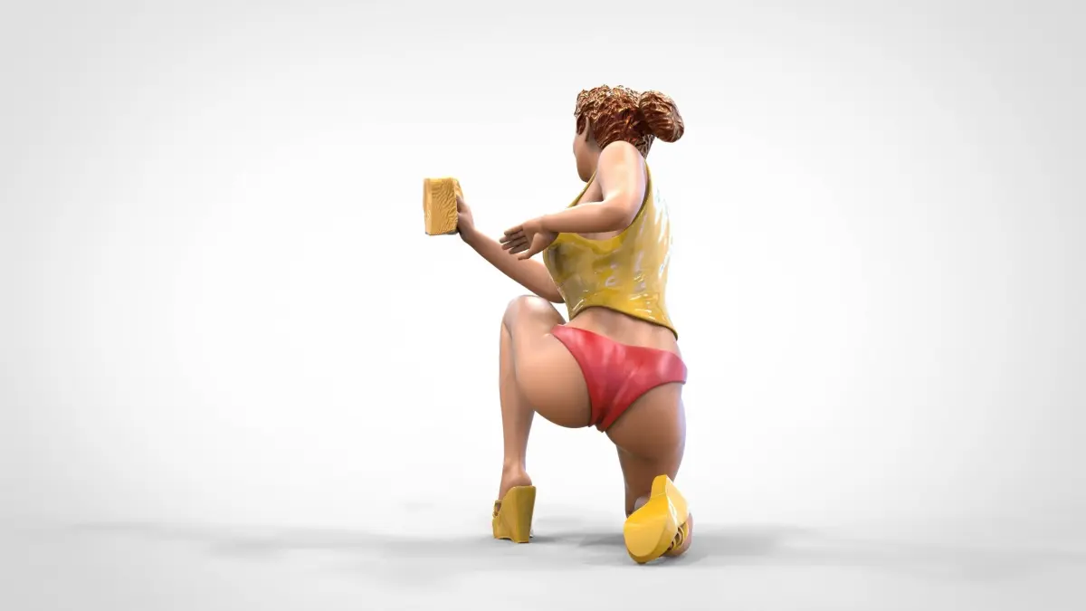 miniature, 3d print, Diorama, Figurine, Figurines, figure, figures, printable, resin, character, STL file, Car wash, diecast, Mechanic, Girl, woman, bucket, washing, hood, tire, attractive, Pretty
