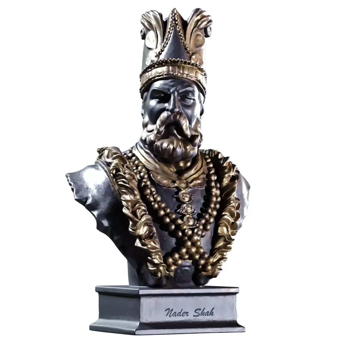 Name: Nader Shah Afshar 3D sculpture iran king 755Type: modelMid: Format: 3Ds Max 2019Export: FBXRender: VRay (6.x), Corona (11)Poly: 815383Verts: 410834Matclasses: Multimaterial,VRayMtl,_CoronaPhysicalMtlUnits: CentimetersDimension: 56.5 x 51.25 x 100.0