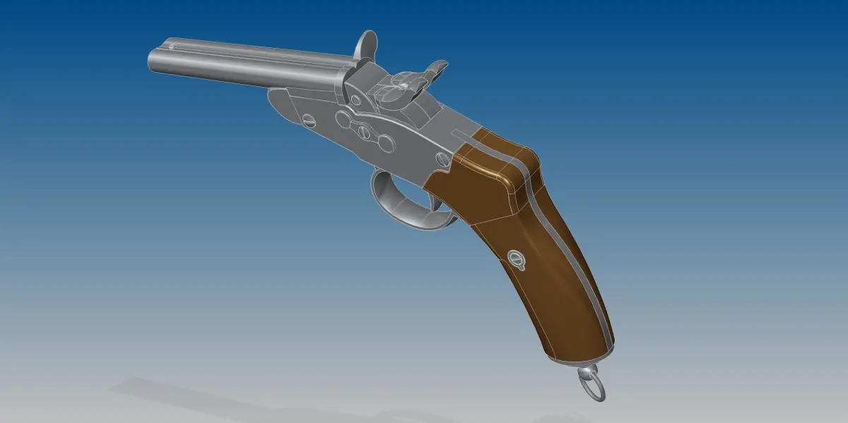 Emile and Leon Nagant set up their manufacturing company in Liege, Belgium in 1859, and it would become one of the most prominent in the city. The brothers worked with a variety of other patent holders, including striking a deal with the Remington company. This would lead to Nagant production of rolling block rifles for the Vatican guards, and also the model 1877 Gendarmerie pistols.Adopted as standard ams for the Belgian Gendarmerie and not replaced until the introduction of the Browning Model 1899, these were double-barreled rolling block action pistols chambered for the Belgian 9.4mm revolver cartridge. They have a single trigger and two hammers, and the trigger will fire either barrel if only one is cocked, or the right and then left barrel if both hammers are cocked (the trigger must be released to reset between barrels). A total of 2000 were made, and their Gendarmerie usage is indicated by the “W” stamp on the buttcap.