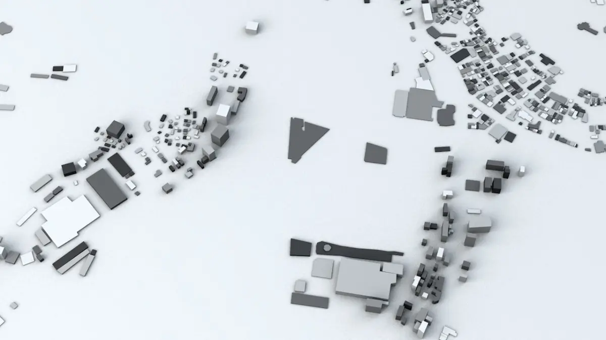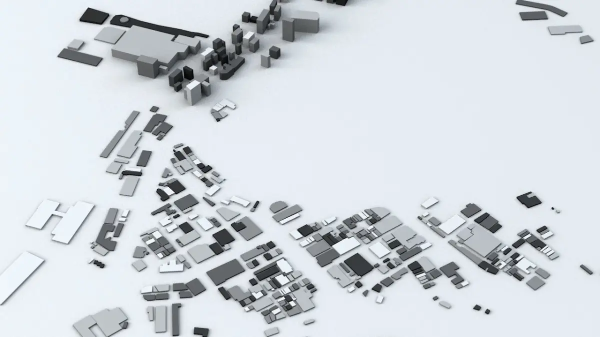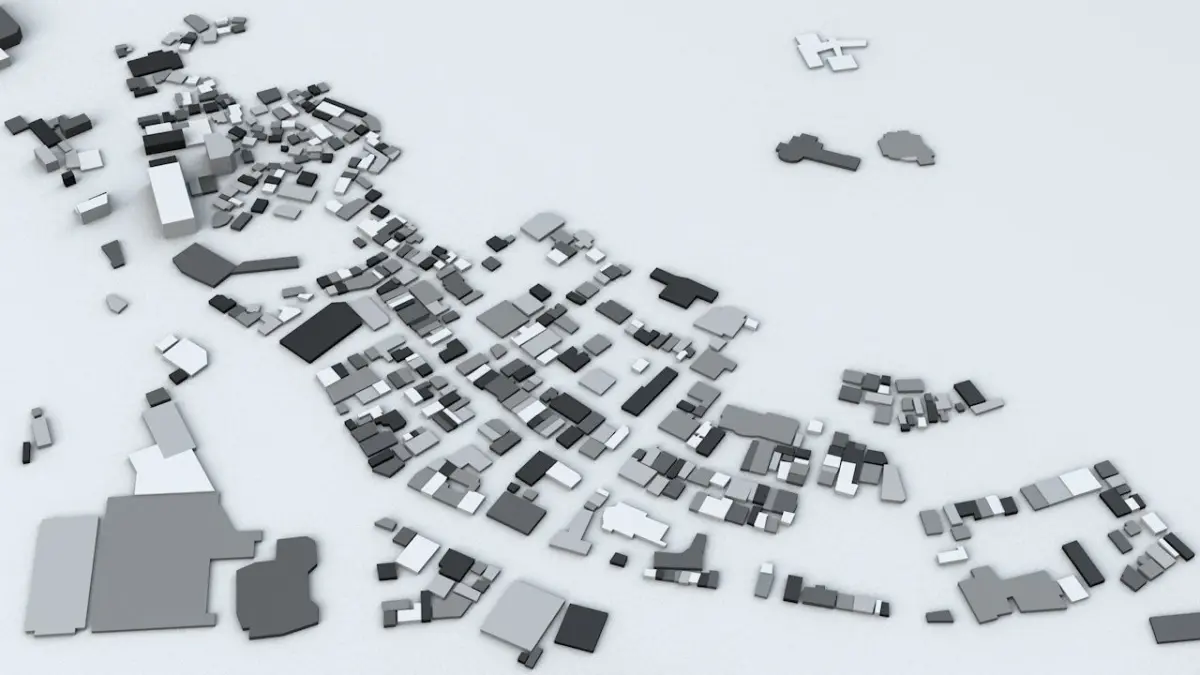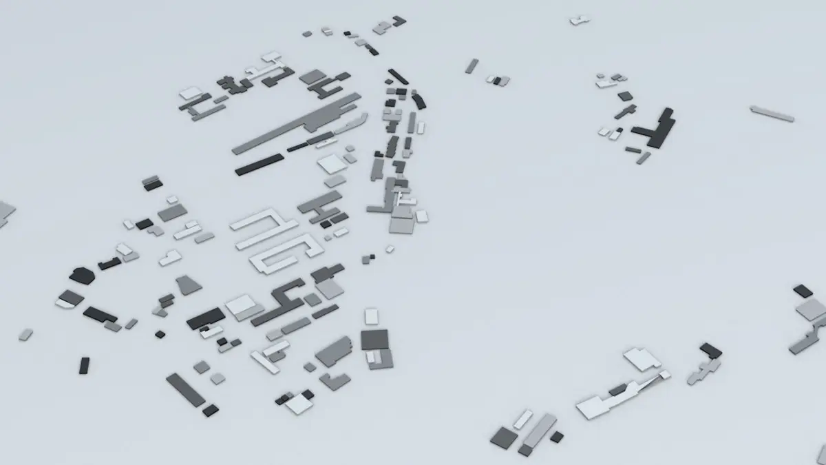 - the model is positioned on a flat surface (all buildings are on the “floor” - no elevation data included)