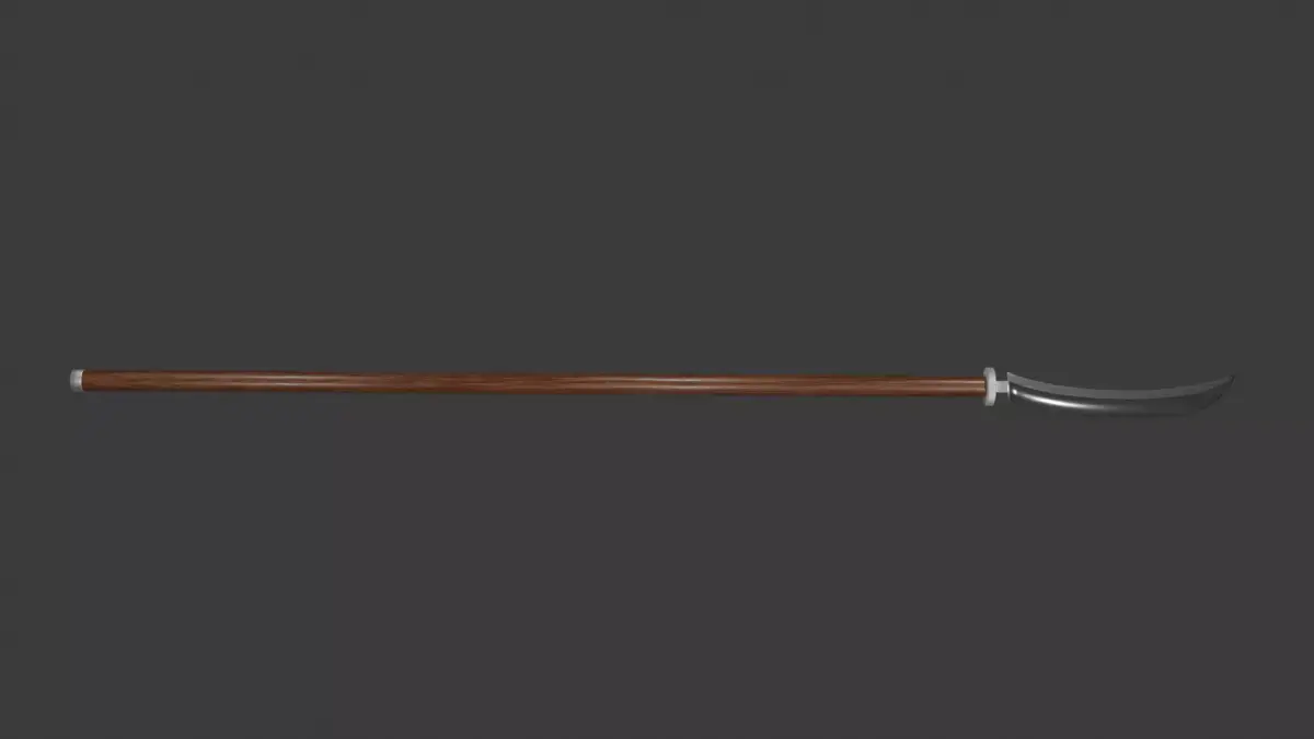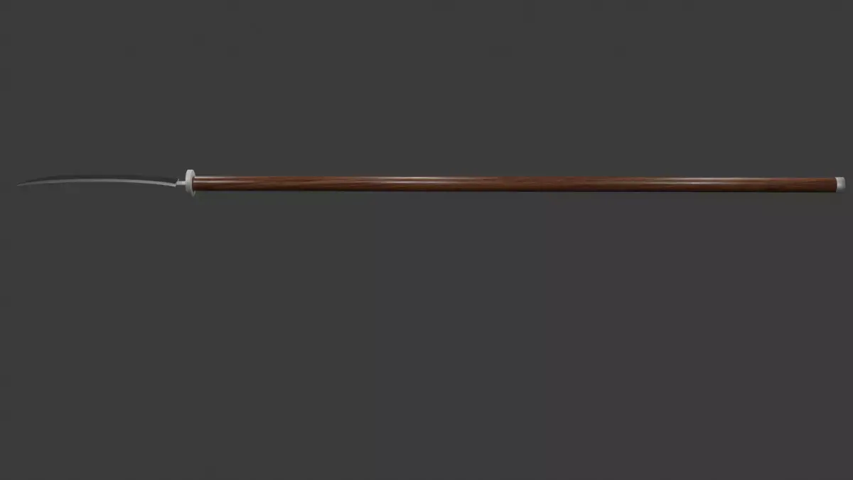 Нагината. Япония, алебарда, древковое оружие с тонким, длинным, слегка изогнутым и расширяющимся к концу клинком. По книге Путь меча. Имеет реальный размер. Следующее оружие из книги.