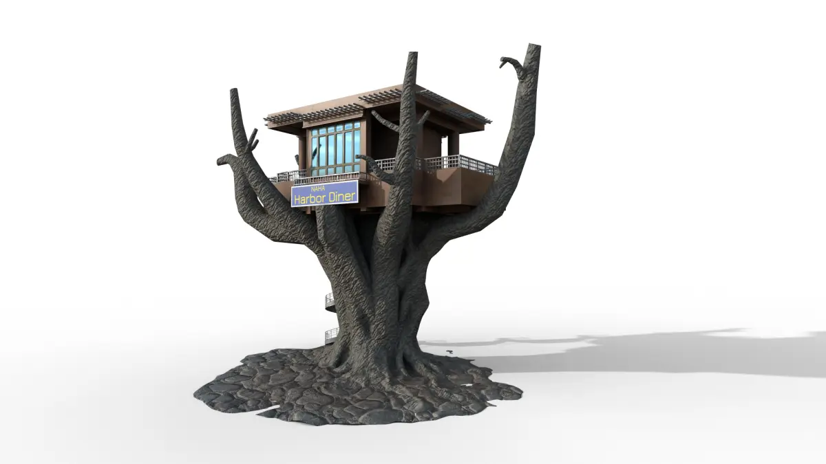 Stylized treehouse diner model ideal for games, animation, and architectural visualization. Inspired by Okinawan architecture with a unique fantasy twist. Comes with clean topology and detailed textures.